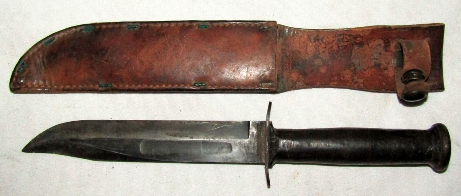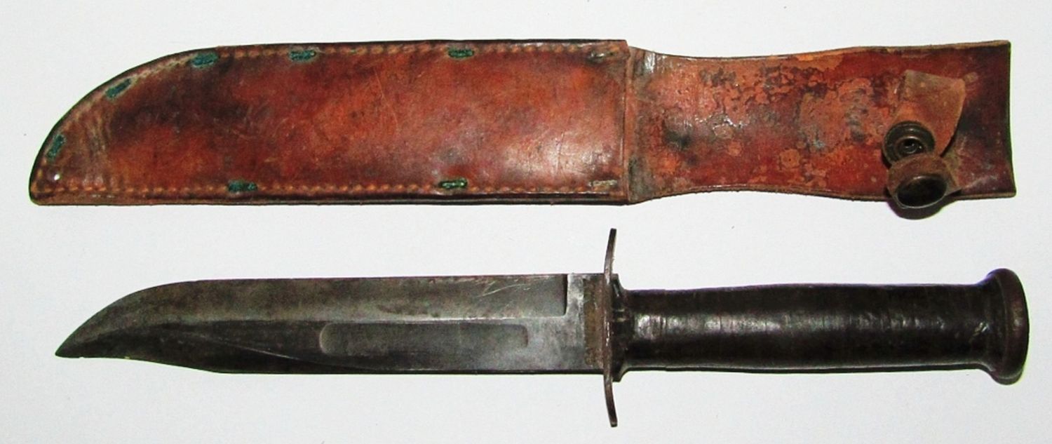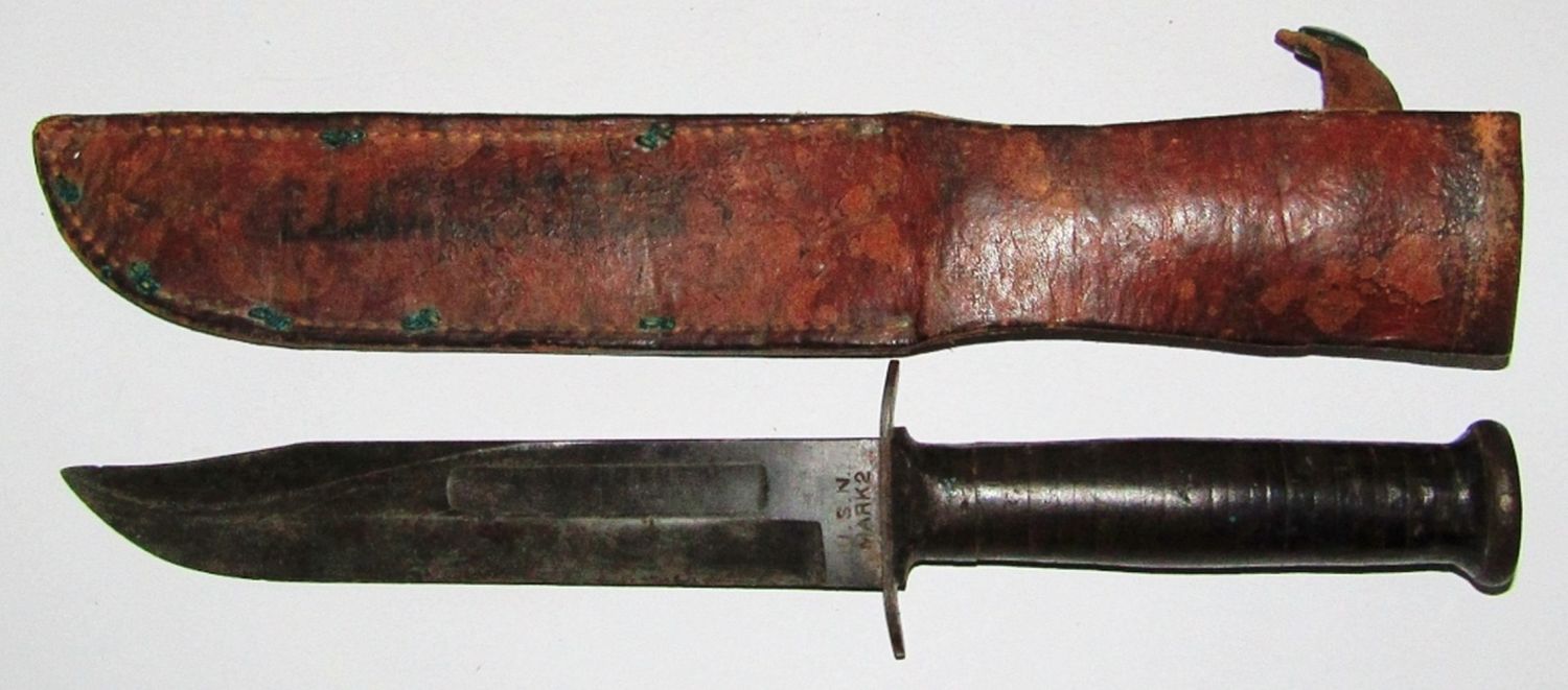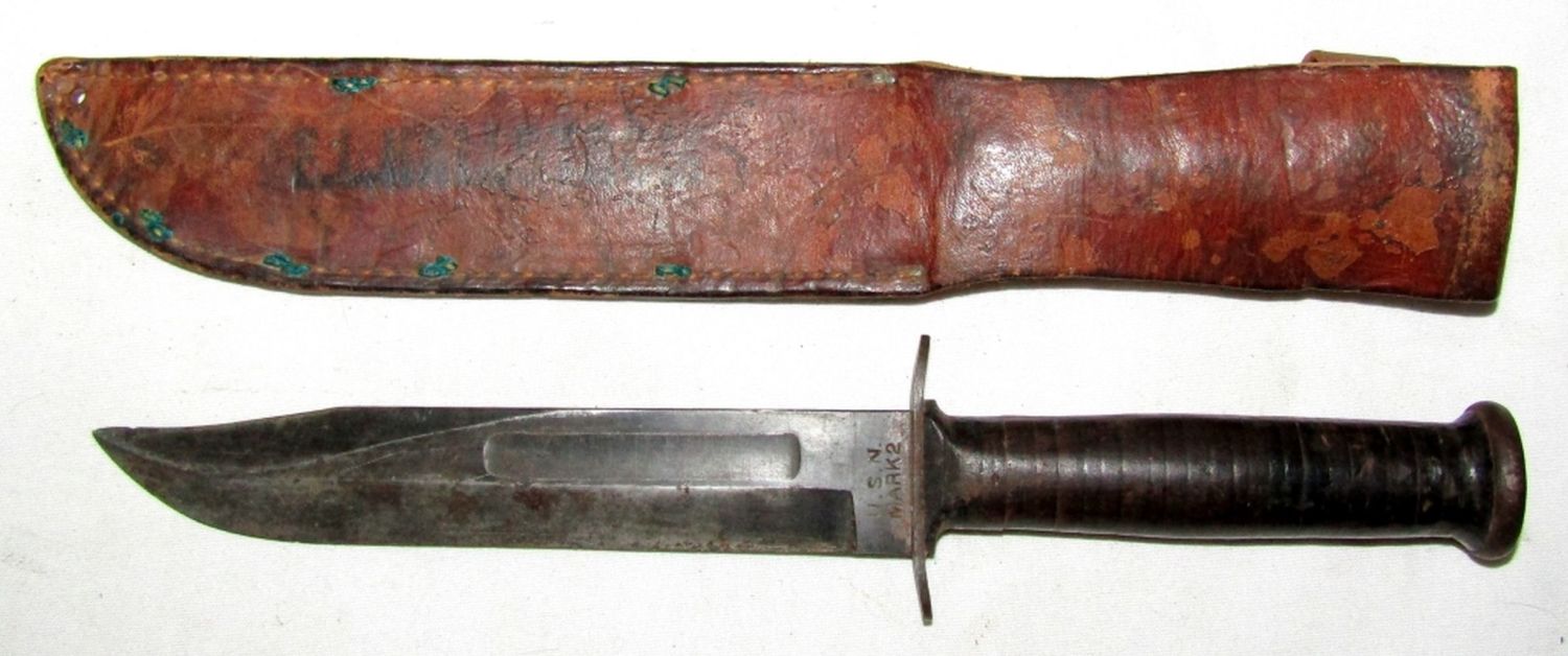 Blade Marked “Camillus NY U.S.N. Mark 2″, With Homemade Sheath; 7″ Blade, 12.75” Overall Length; Used Conditions.