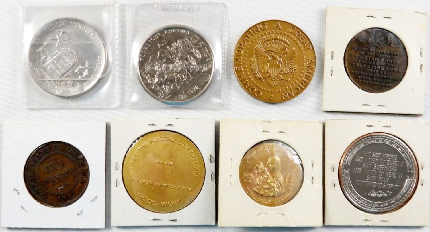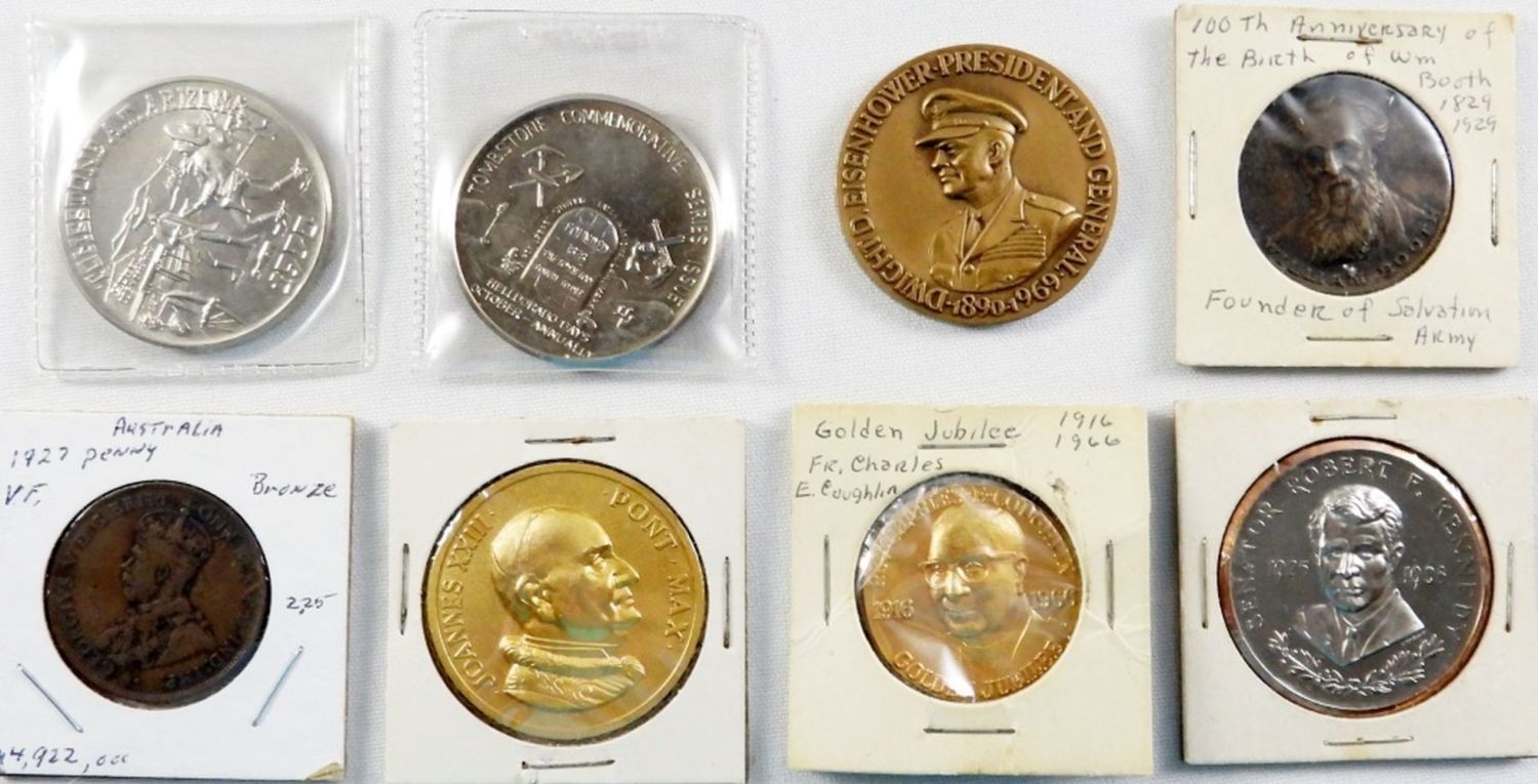SALVATION ARMY FOUNDER, (2) TOMBSTONE AZ, EISENHOWER, ROBERT F KENNEDY, (2) RELIGIOUS, (1) 1927 AUSTRALIA LARGE CENT