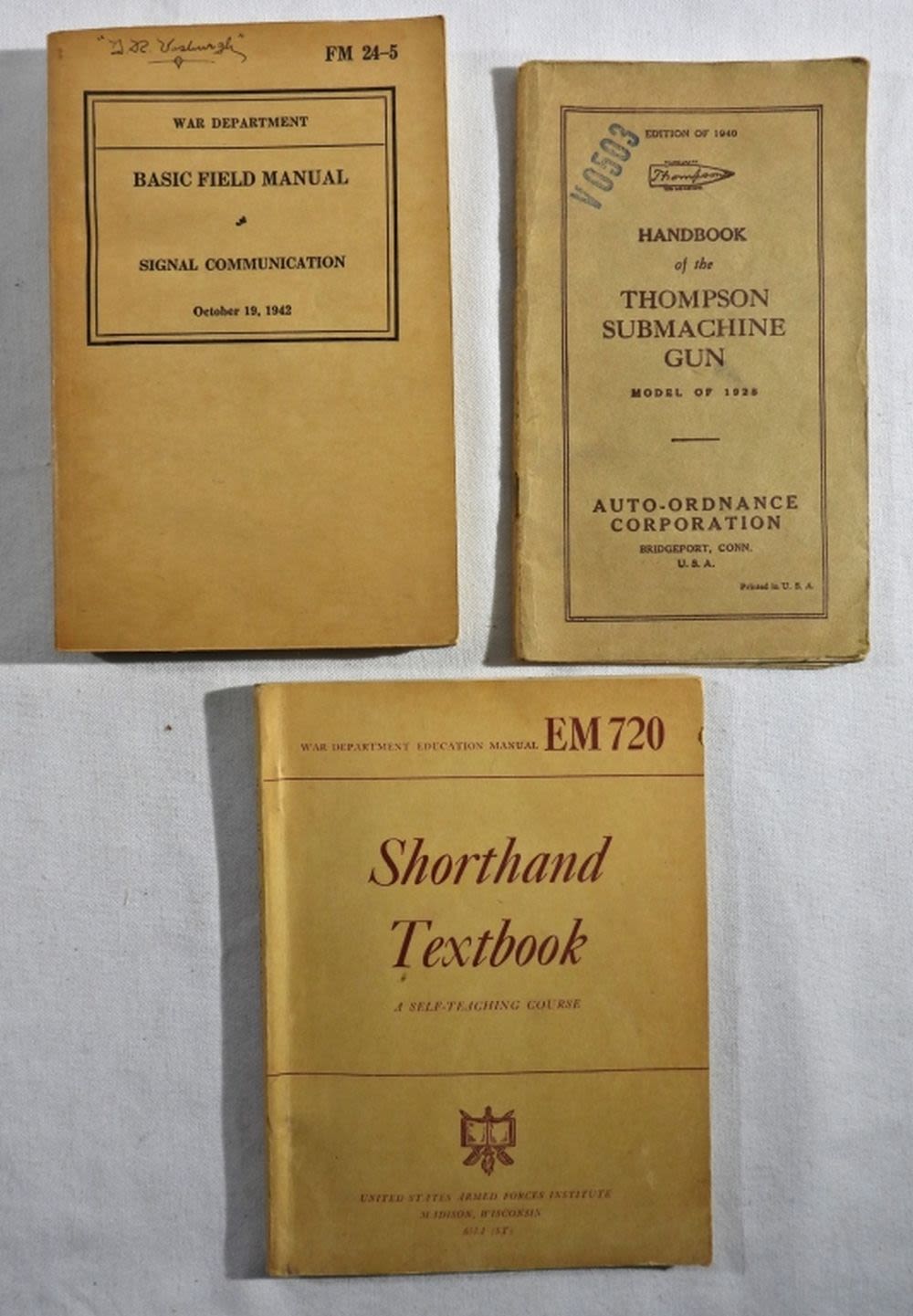 THOMPSON SUBMACHINE GUN & SHORTHAND TEXTBOOK ARMED FORCES
