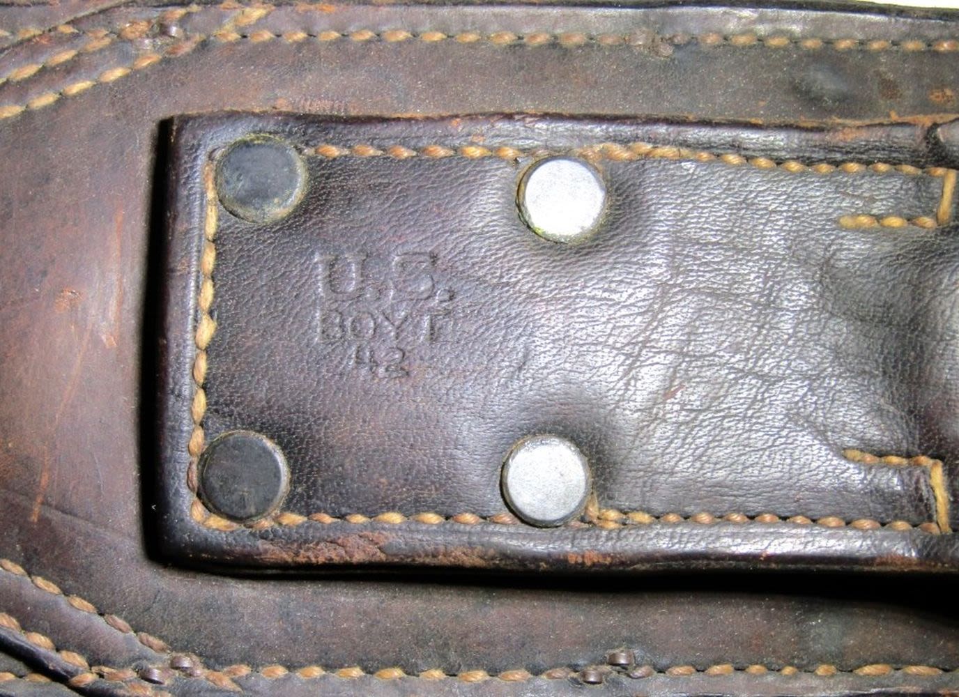 Blade Marked “US Legitimus Collins & Co. 1942”, Leather Sheath Stamped “US Boyt 42″; 21.75″ Blade, 26.75” Overall.