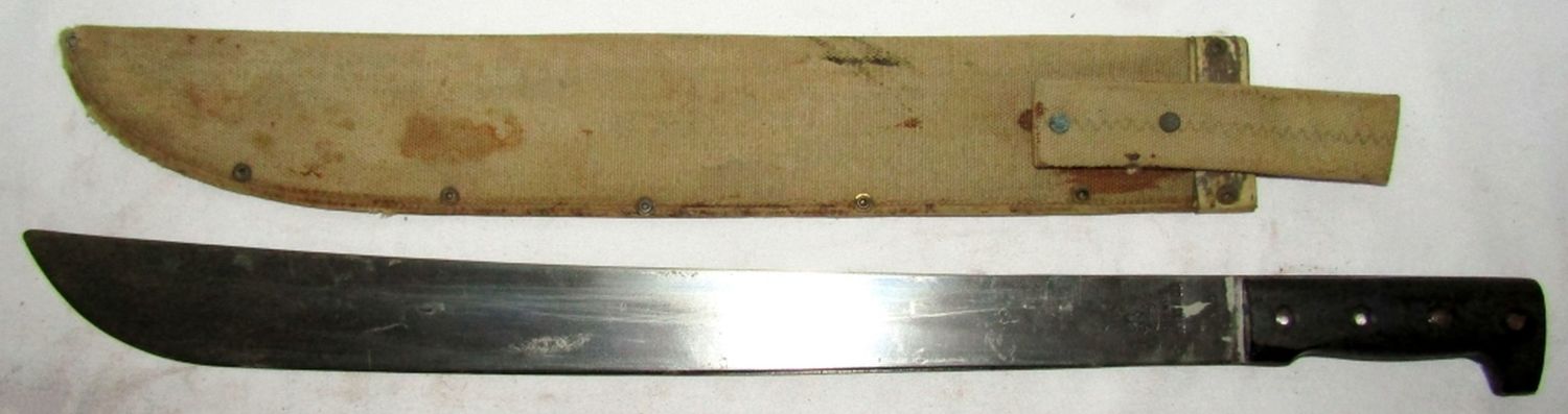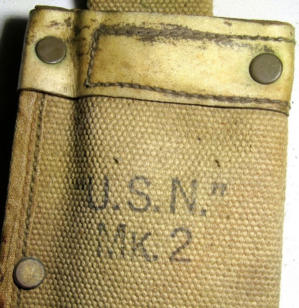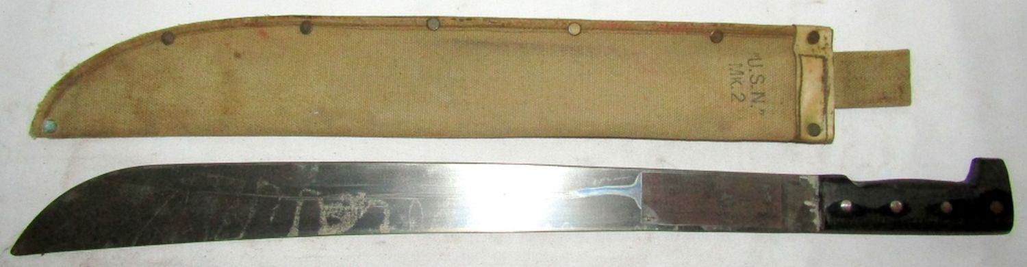 Blade Marked “Legitimus Collins & Co.” With Company Stamp, Canvas Sheath Marked “U.S.N. MK. 2″; 22″ Blade, 27” Overall.