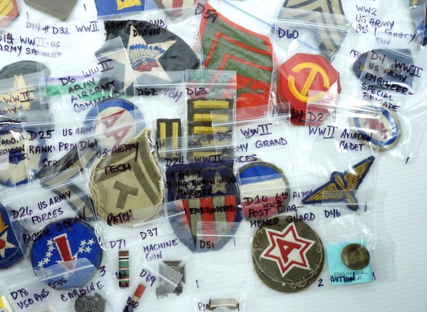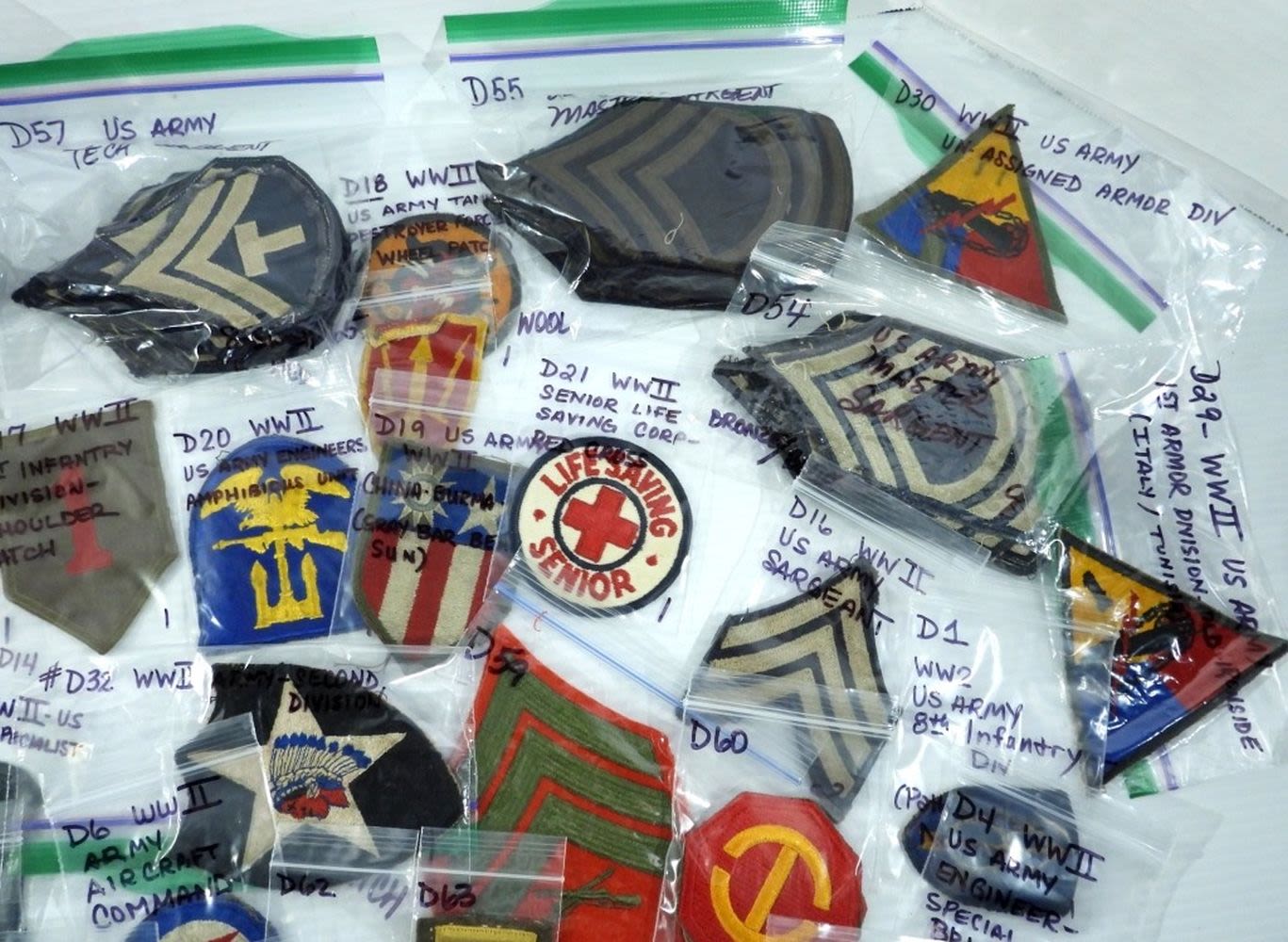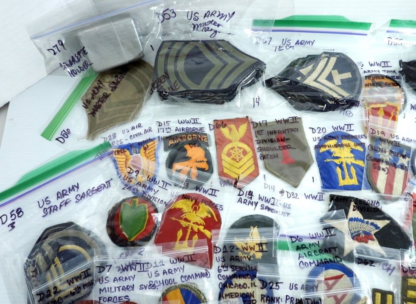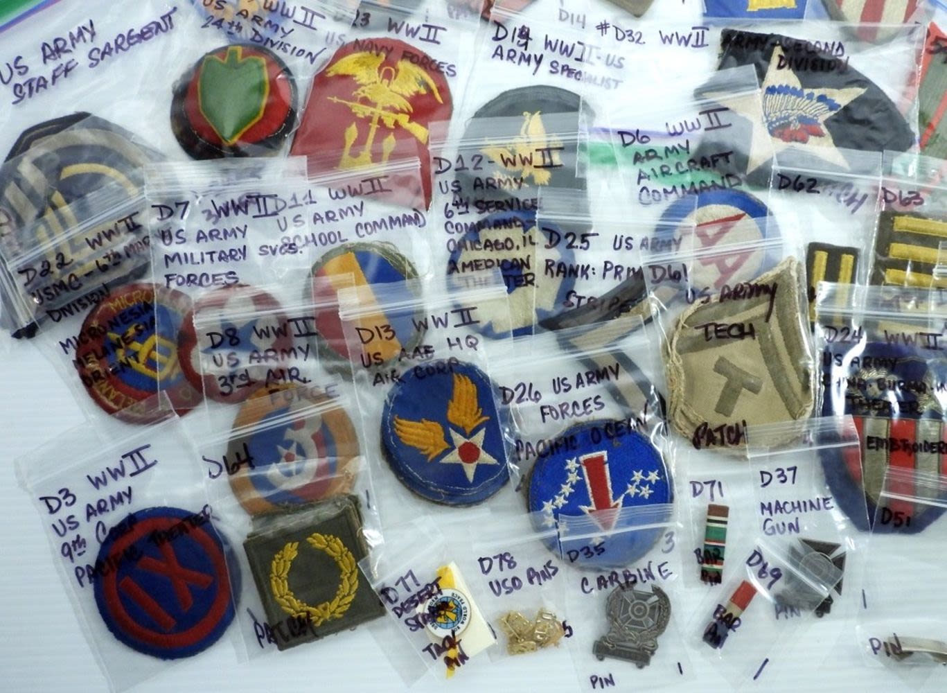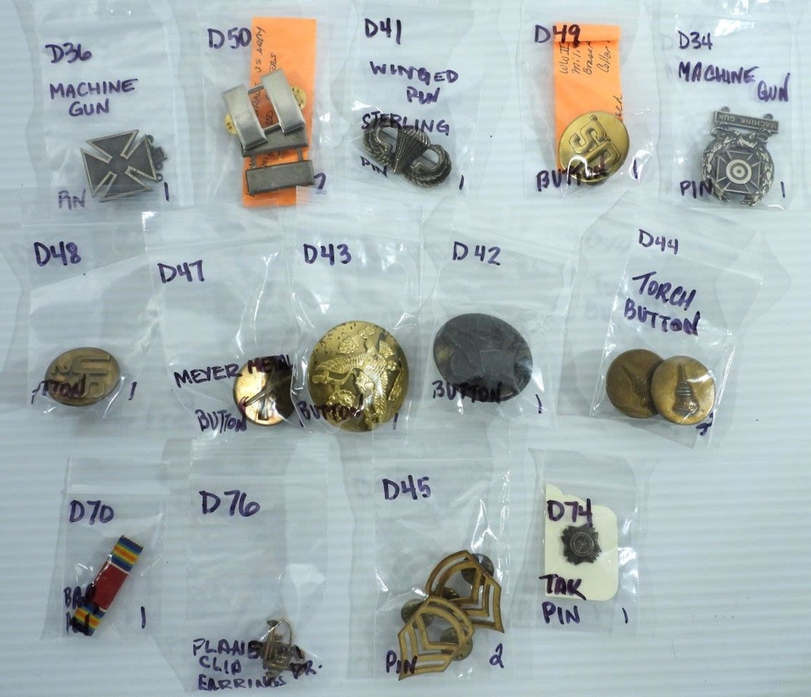 HUGE VARIETY – MOSTLY ALL IDENTIFIED in BAGS – VERY NICE CONDITION – VARIOUS BRANCHES of MILITARY – MOSTLY VINTAGE