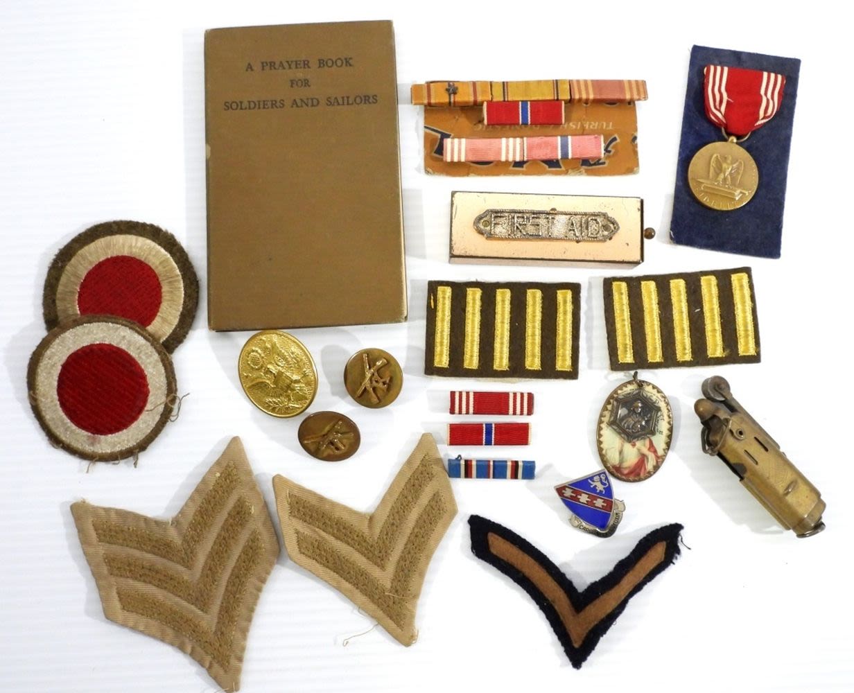 FIRST AID KIT, PRAYER BOOK, PATCHERS, MEDALS, PINS & MORE