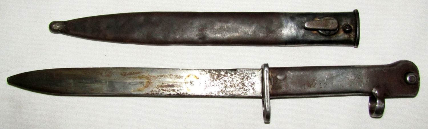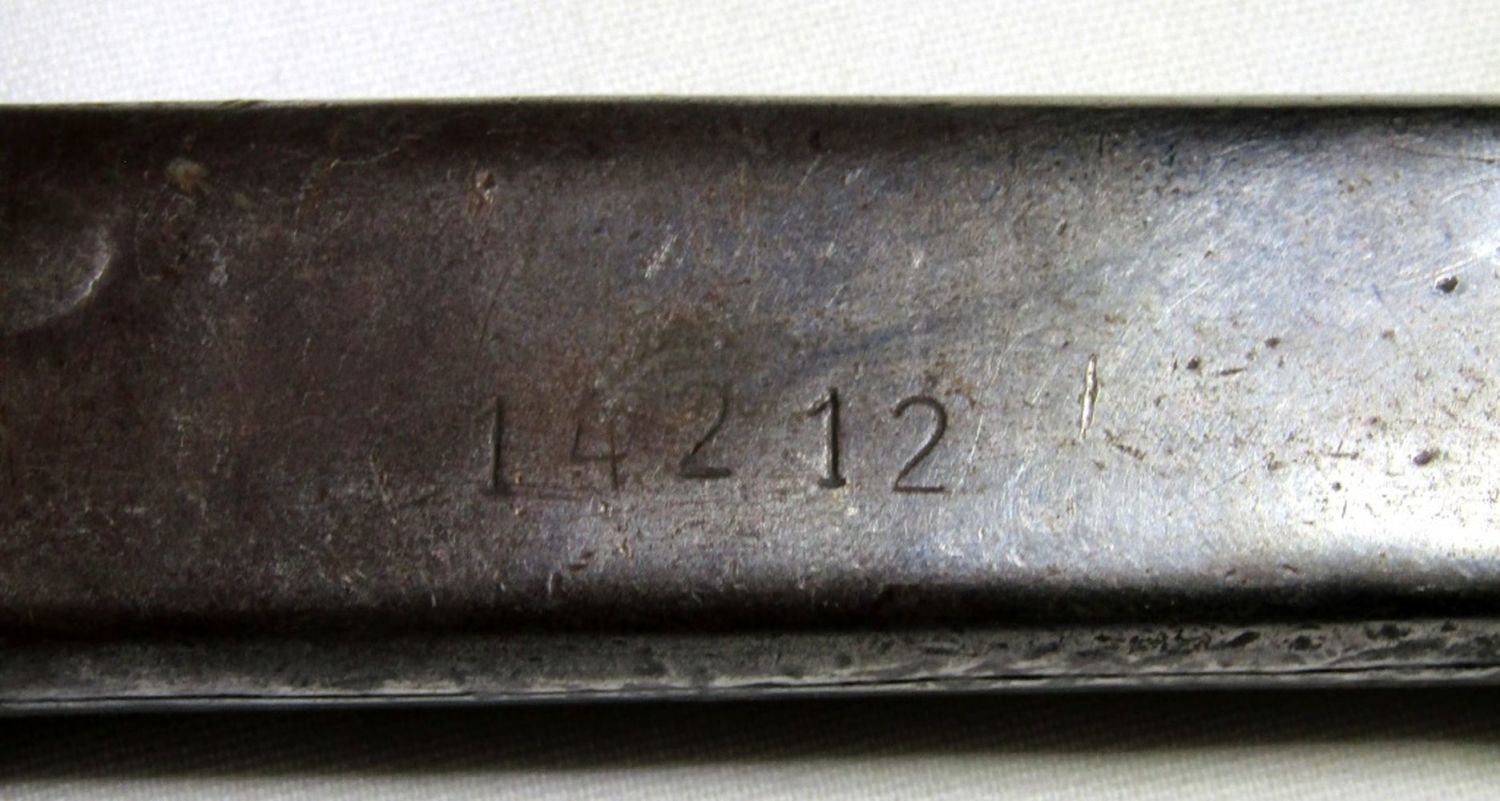 With Scabbard. Bayonet Hilt Marked “14212”; 9″ Blade, 14.5″ Overall.