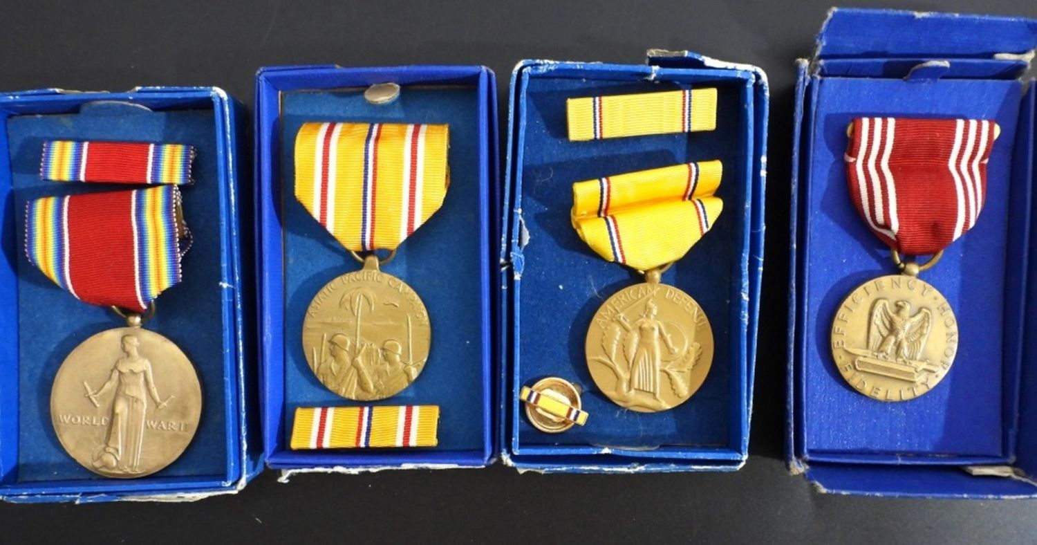 ASIATIC PACIFIC CAMPAIGN, EFFICIENCY HONOR FIDELITY, WWII FREEDOM, AMERICAN DEFENSE