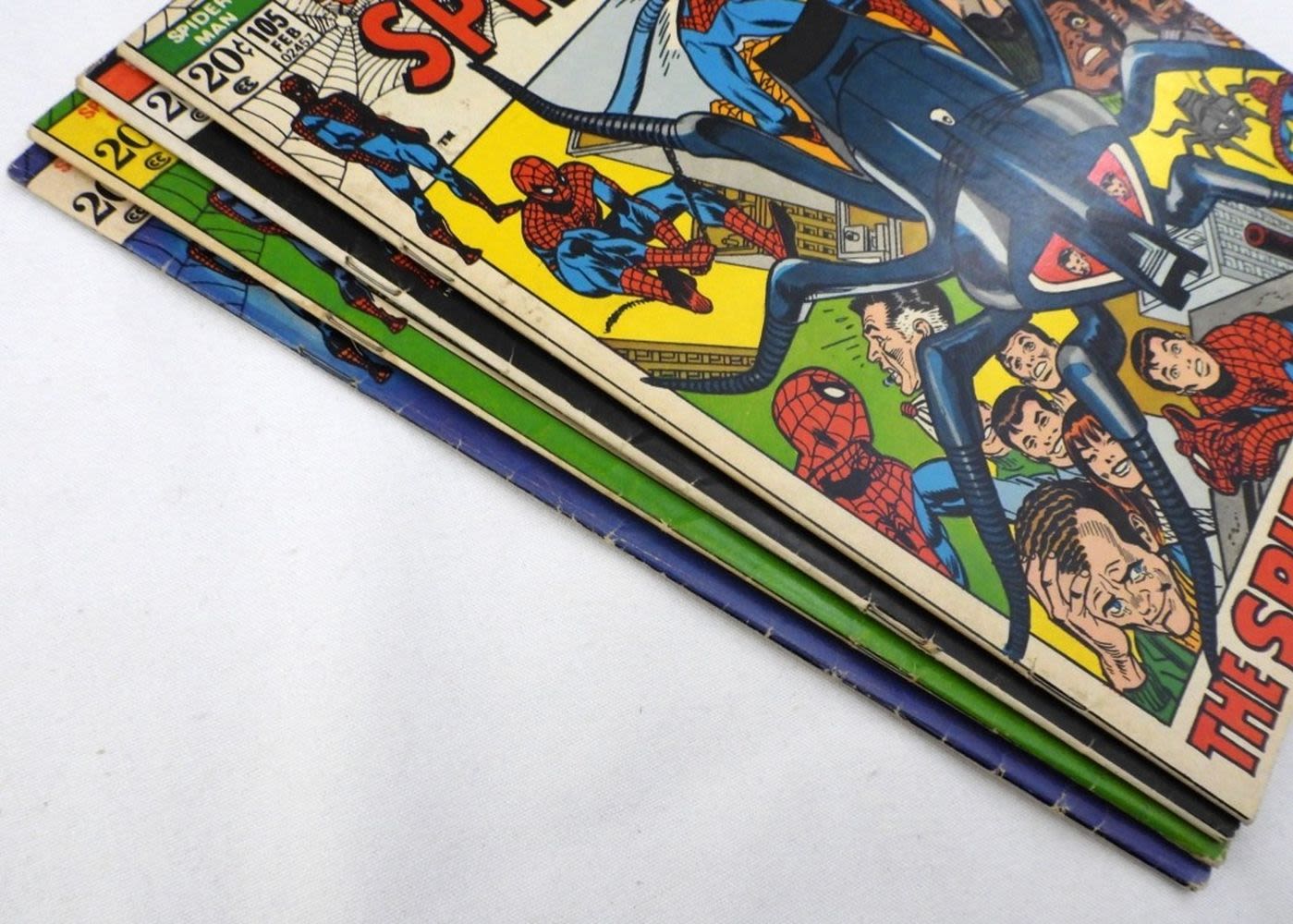 #104 Kraven the Hunter! Ka-Zar!, #105 Fist App. Spider Slayer, #106 Squash! Goes the Spider!, #107 Trapped by the Tentacles of Death!; Marvel Comics Group, Bronze Age – Good/VG Conditions.