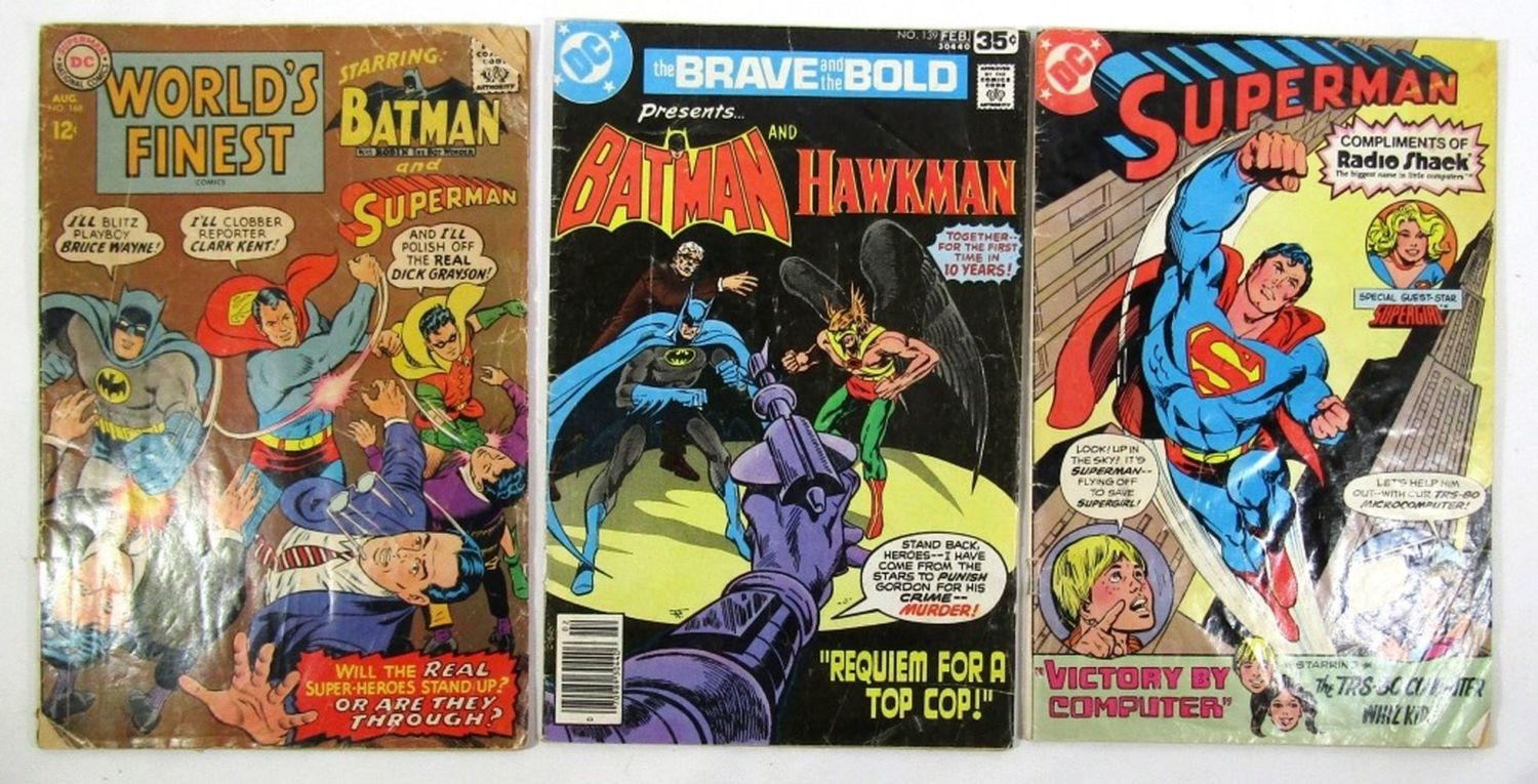 World’s Finest Comics #168 (DC, 1967), Brave and the Bold #139 Batman and Hawkman (DC, 1978), Superman in Victory by Computer (1981 Edition DC, Radio Shack); Fair/Good Conditions.