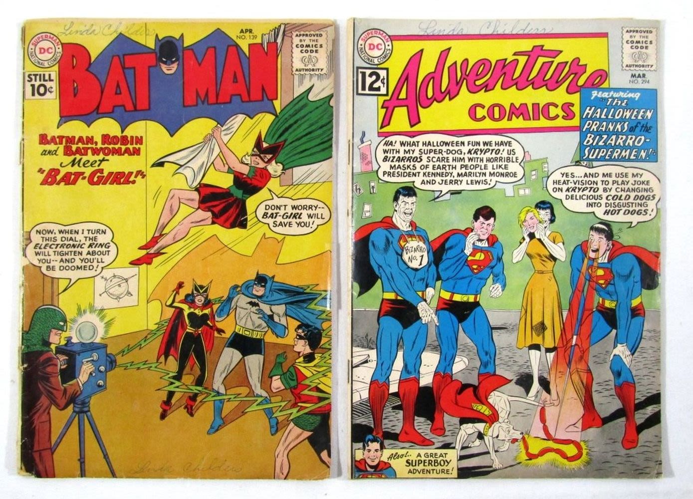 Batman #139 (1st Original Batgirl Betty Kane), Superman #153, Wonder Woman #129 & 131, Jimmy Olsen #64, Adventure Comics #294, Superboy #98 & 103 – Silver Age DC Comics – Poor/Fair Conditions.