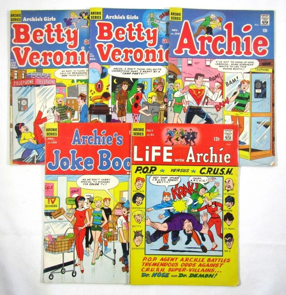 Life with Archie #51, Archie’s Joke Book #106, Archie #168, Betty & Veronica #131 & #133; Silver Age Comics – Good/Fair Conditions.