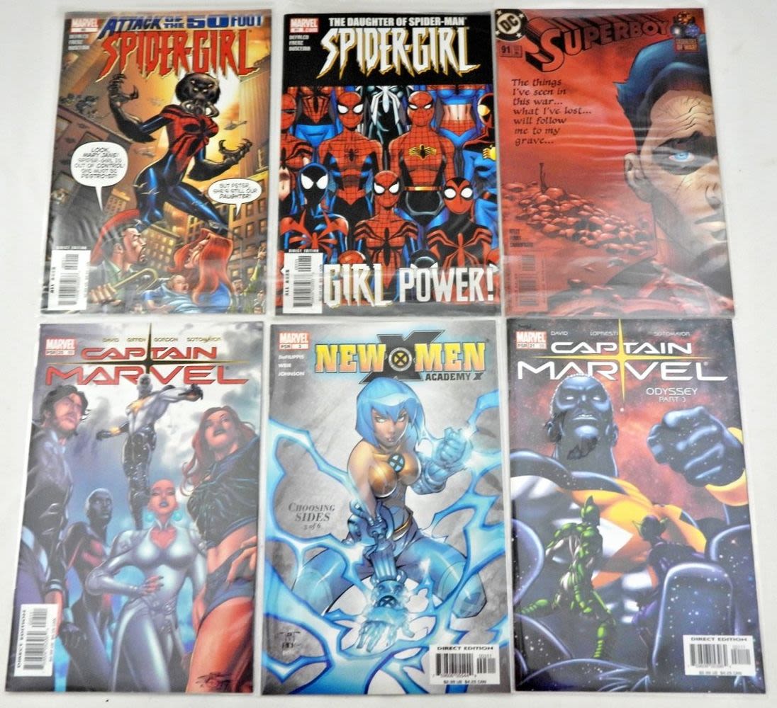 SPIDER-GIRL, SUPERBOY, CAPTAIN MARVEL, NEW X MEN, SHAZAM, ENEMY ACE – NICE LOT of (21) COMICS in SLEEVES
