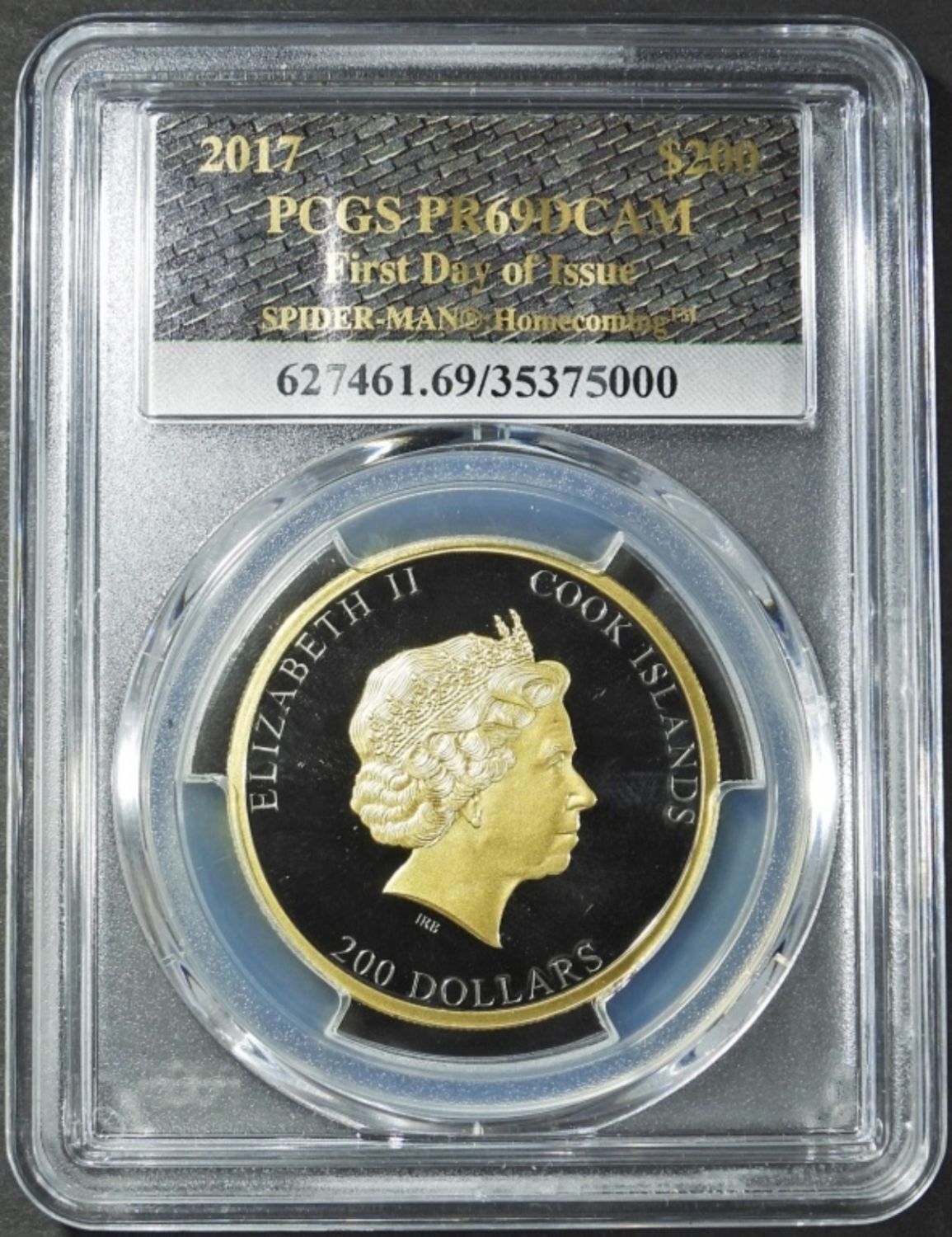 STAN LEE SIGNED, FIRST DAY OF ISSUE COOK ISLANDS SPIDER-MAN: HOMECOMING LIMITED EDITION BLACK PROOF 1oz .999 GOLD. IN ORIGINAL BOX.