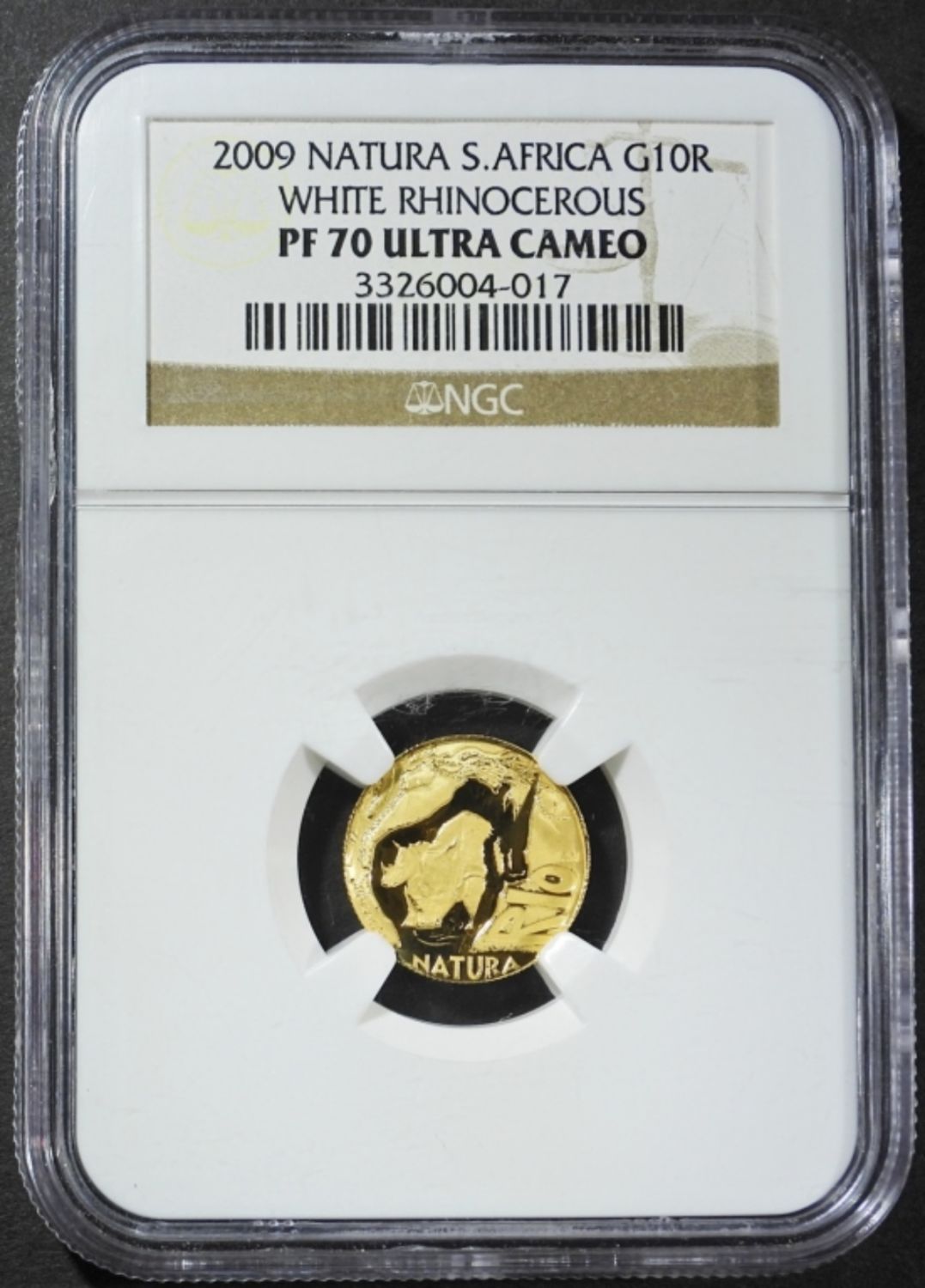 SOUTH AFRICA NATURA WHITE RHINOCEROUS GOLD 10 RAND. 1/10 OZ 999.9