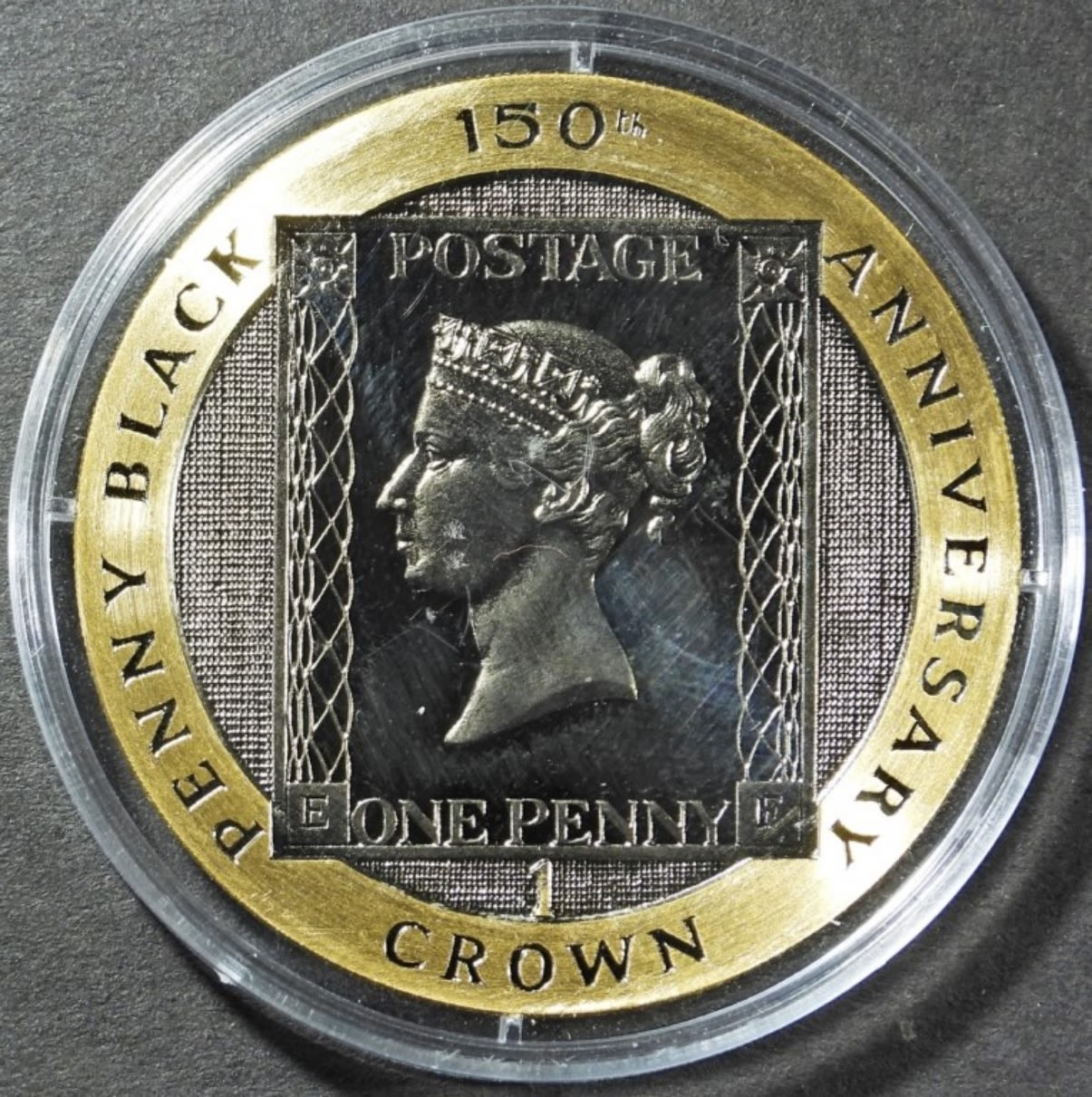 ISLE OF MAN, PENNY BLACK STAMP 150TH ANNIVERSARY, IN OGP W/ COA.