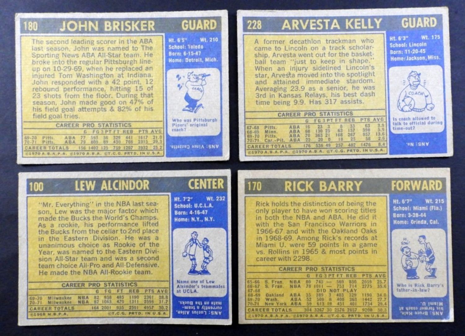 includes #100 ALCINDOR VG+ & #170 RICK BARRY – MOSTLY DIFFERENT – OVERALL NICE VG-VGEX