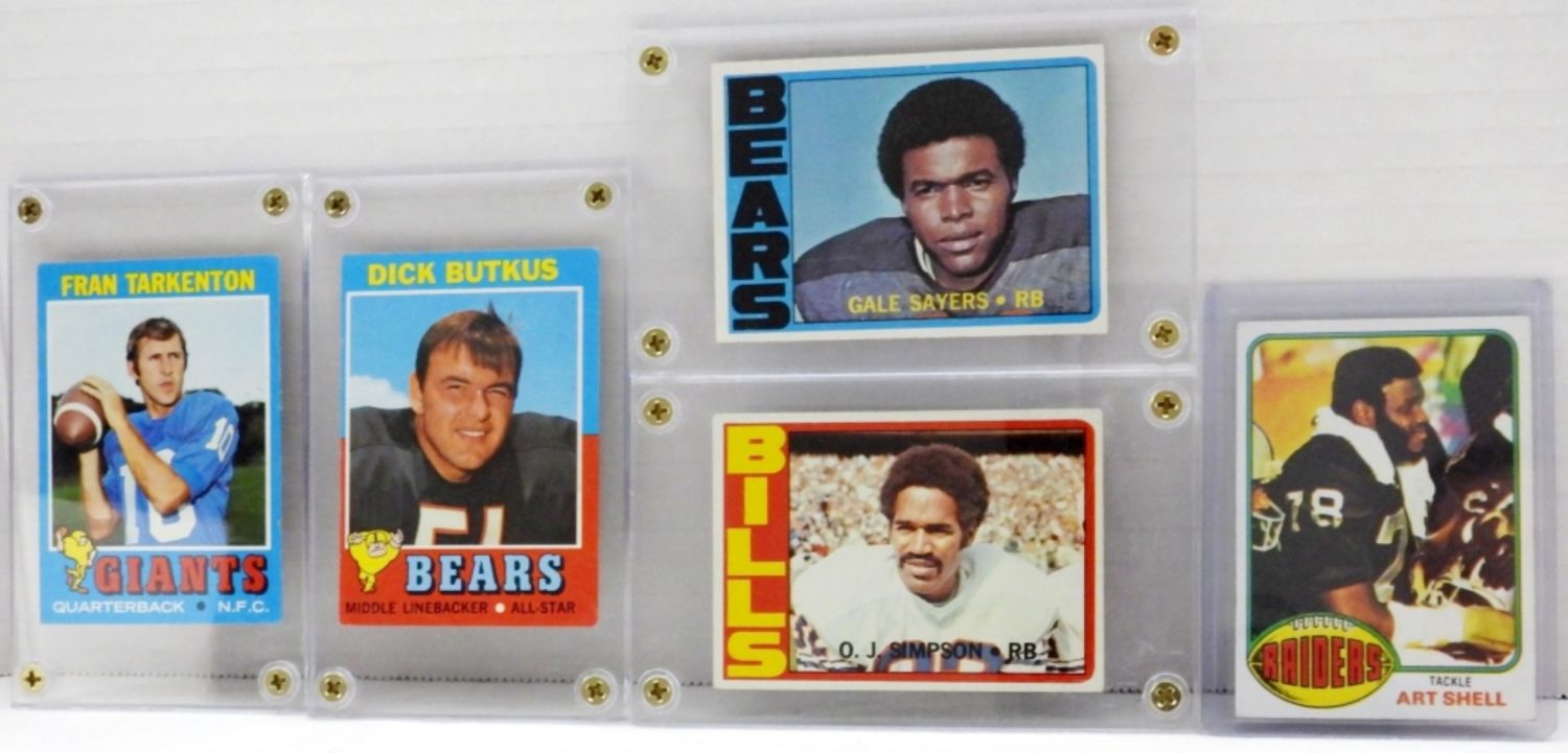 #110 EM+, 1972 TOPPS #160 SIMPSON EX, 1971 TOPPS #25 BUTKUS EX, 1971 TOPPS #120 TARKENTON EX+, 1976 TOPPS #380 ART SHELL EX