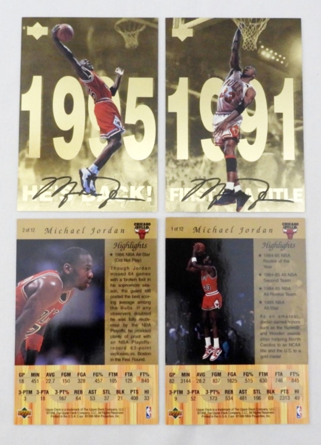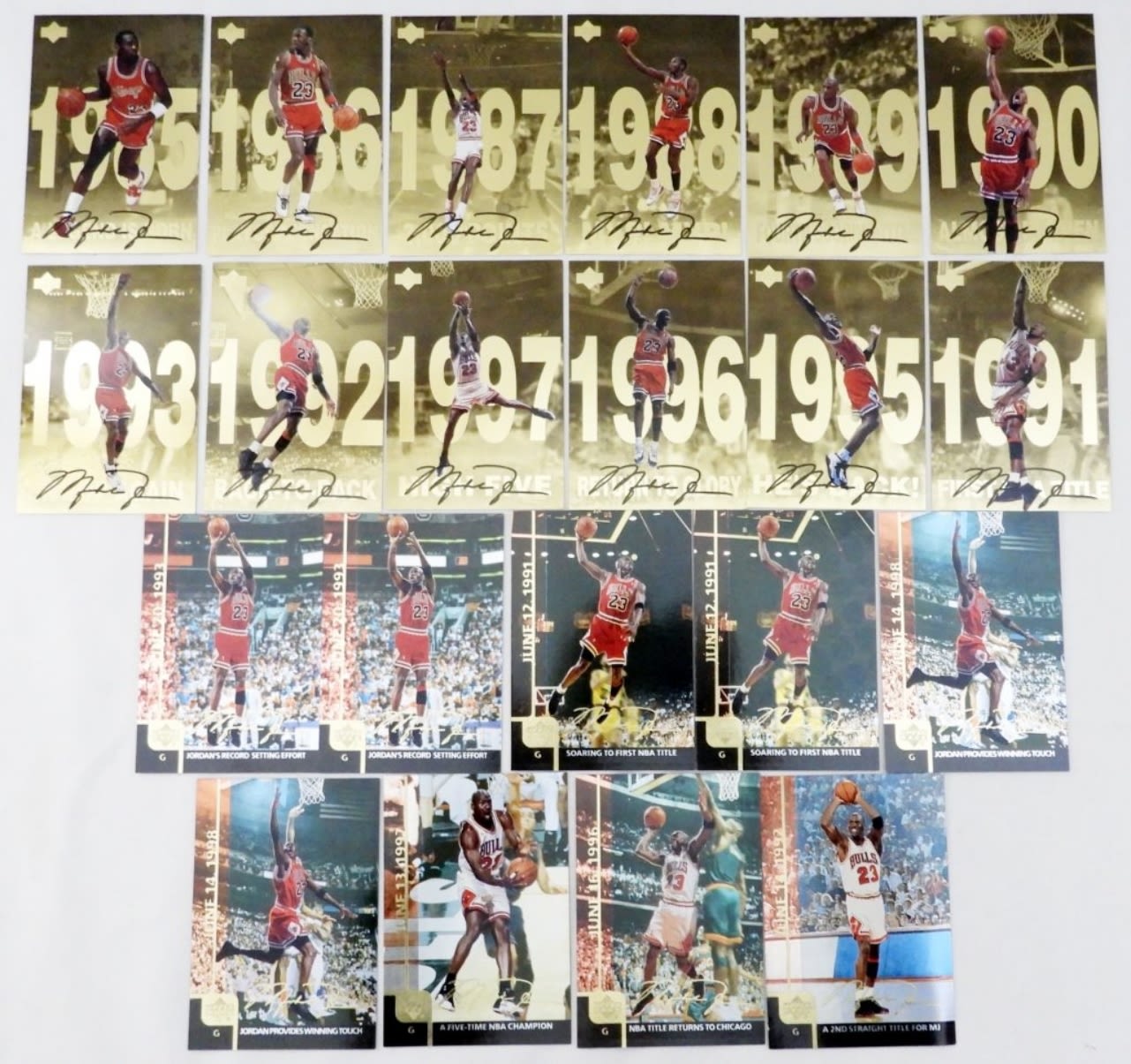 Complete Set Of 12 Jumbo Gold Cards plus (9) UPPER DECK GATORADE 1999 CARDS