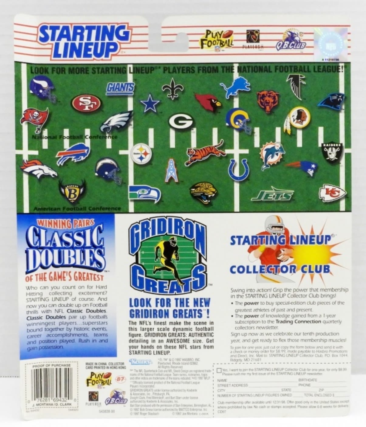 STARTING LINEUP CLASSIC DOUBLES – BRAND NEW IN ORIGINAL BOX – JOE MONTANA & DWIGHT CLARK