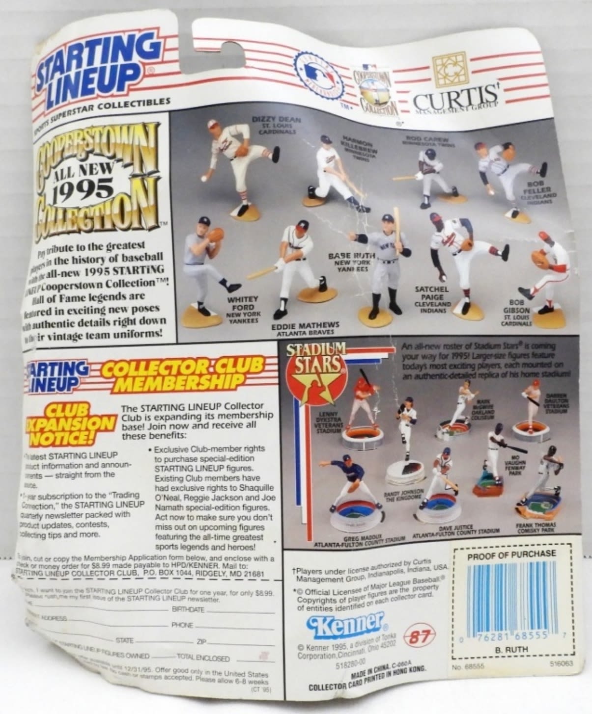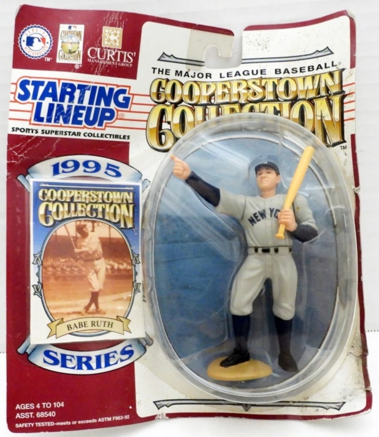 STARTING LINEUP COOPERSTOWN COLLECTION 1995 BABE RUTH FIGURINE & CARD – SEALED IN ORIGINAL BOX WITH SOME WATER DAMAGE & WEAR
