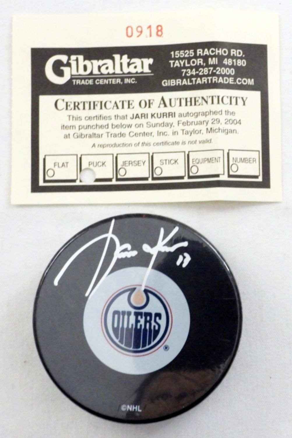 SIGNED ON THE OFFICIAL LICENSED PRODUCT OF THE NHL OILERS PUCK, COA FROM GIBRALTAR FROM 2004