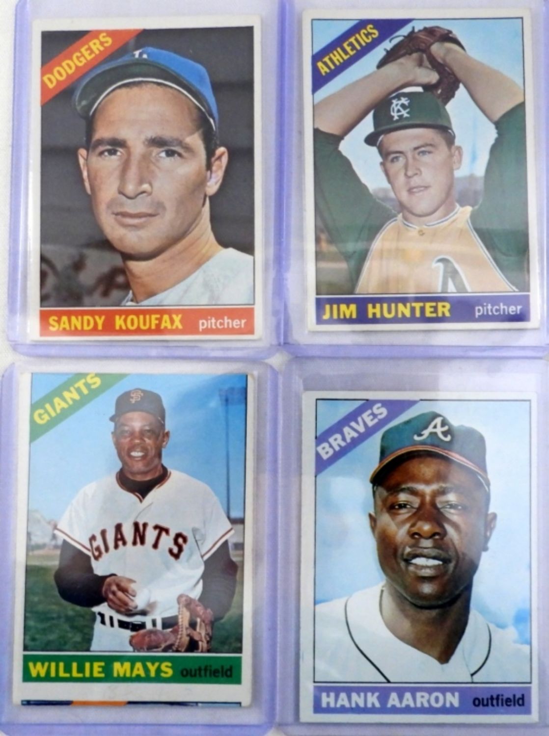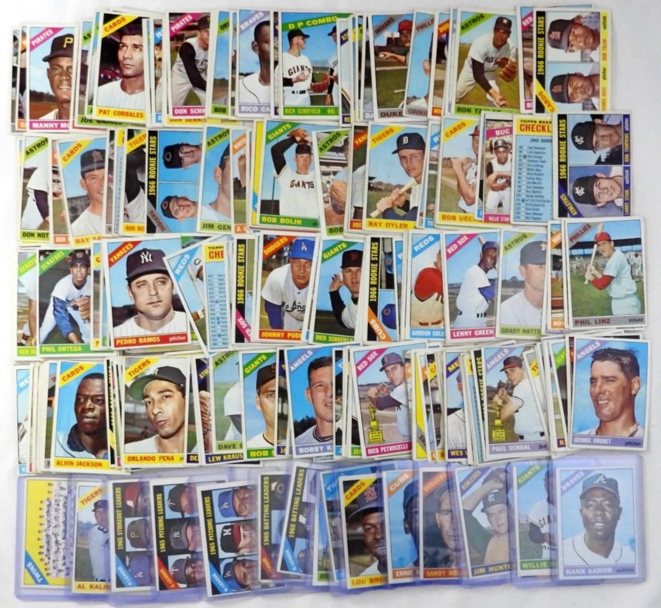 ALL DIFFERENT! Includes #1 MAYS miscut, #36 HUNTER, #100 KOUFAX, #110 BANKS, #125 BROCK, #120 KILL, #195 MORGAN EX, #215 CLEMENTE/AARON/MAYS VGEX+, #223 LDR, #224 LDR, #225 LDR, #410 KALINE, #500 AARON EX NICE, #526 T/C VG – ALL STARS NICE VGEX unless NOTED – OVERALL VGEX/VGEX+/EX some VG – GREAT COLOR & GLOSS
