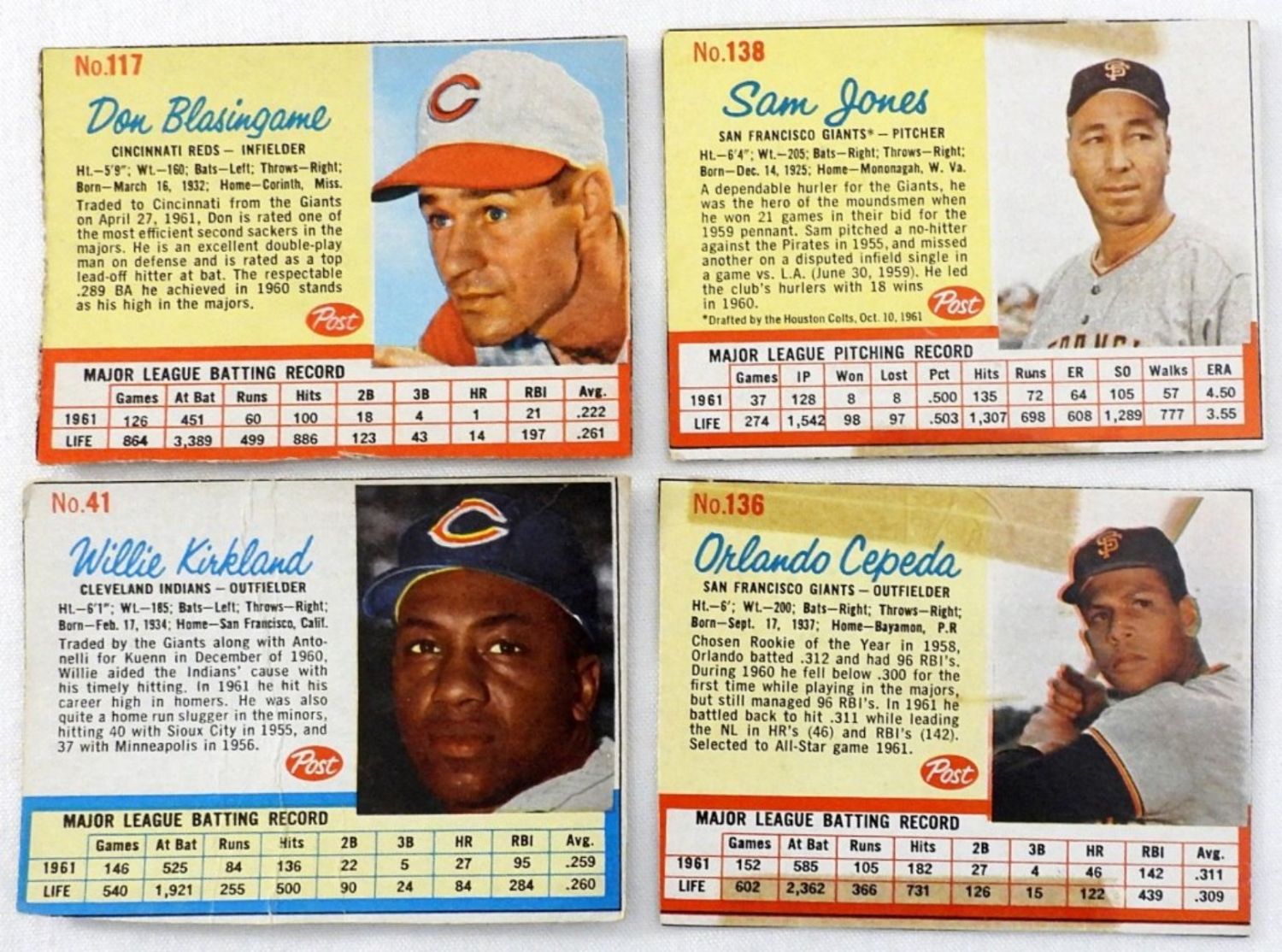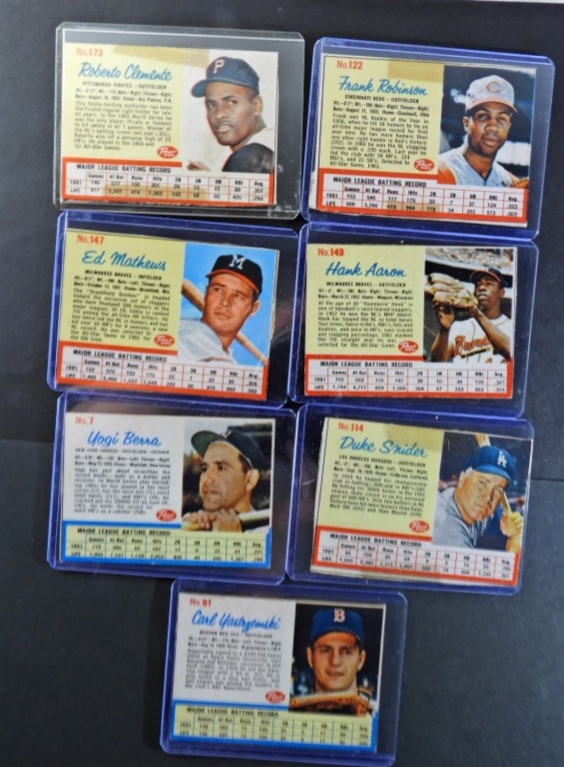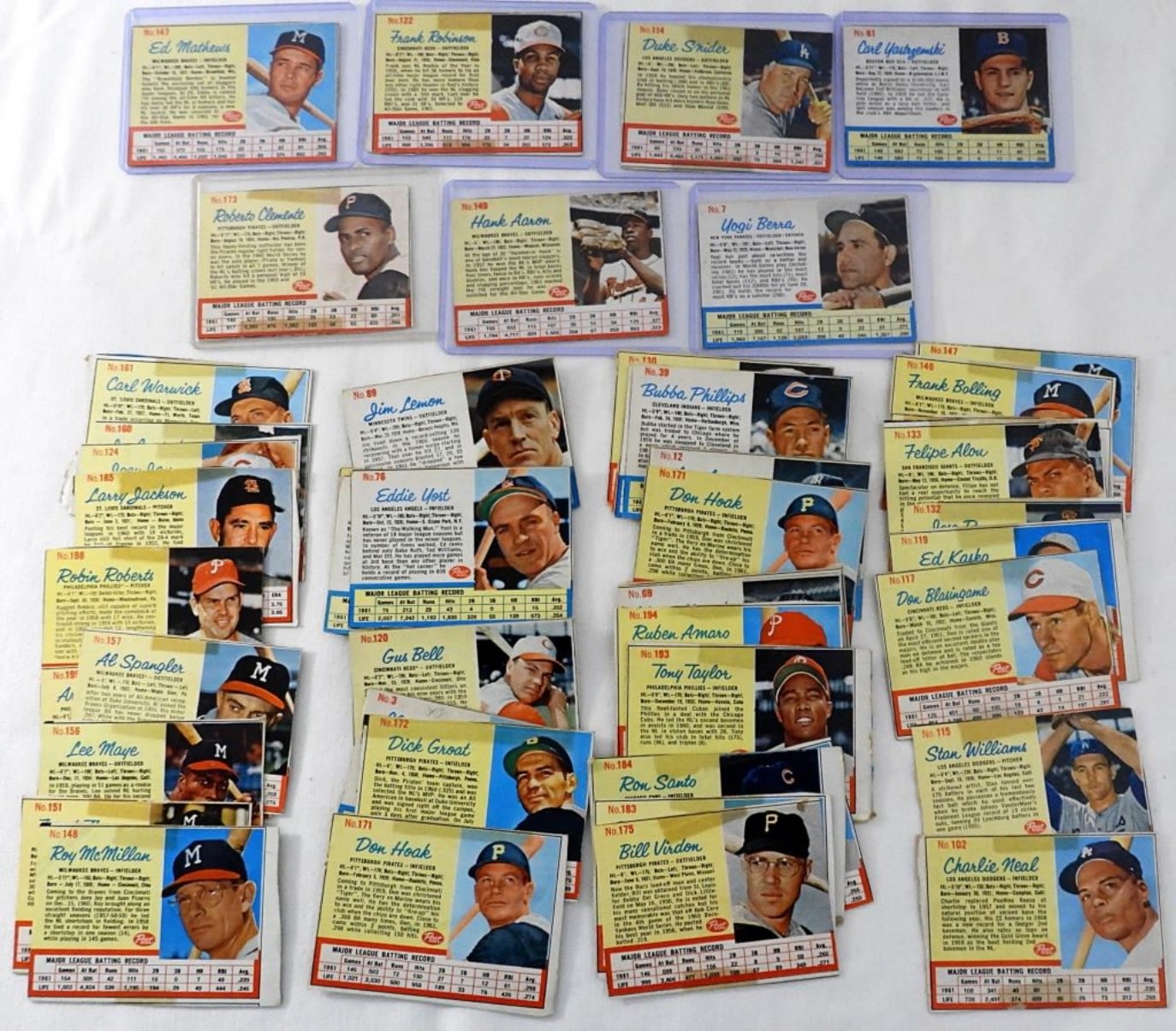 MOSTLY ALL DIFFERENT – includes BERRA, YAS, SNIDER, F. ROBINSON, MATHEWS, AARON, CLEMENTE – OVERALL VGEX with tape stain