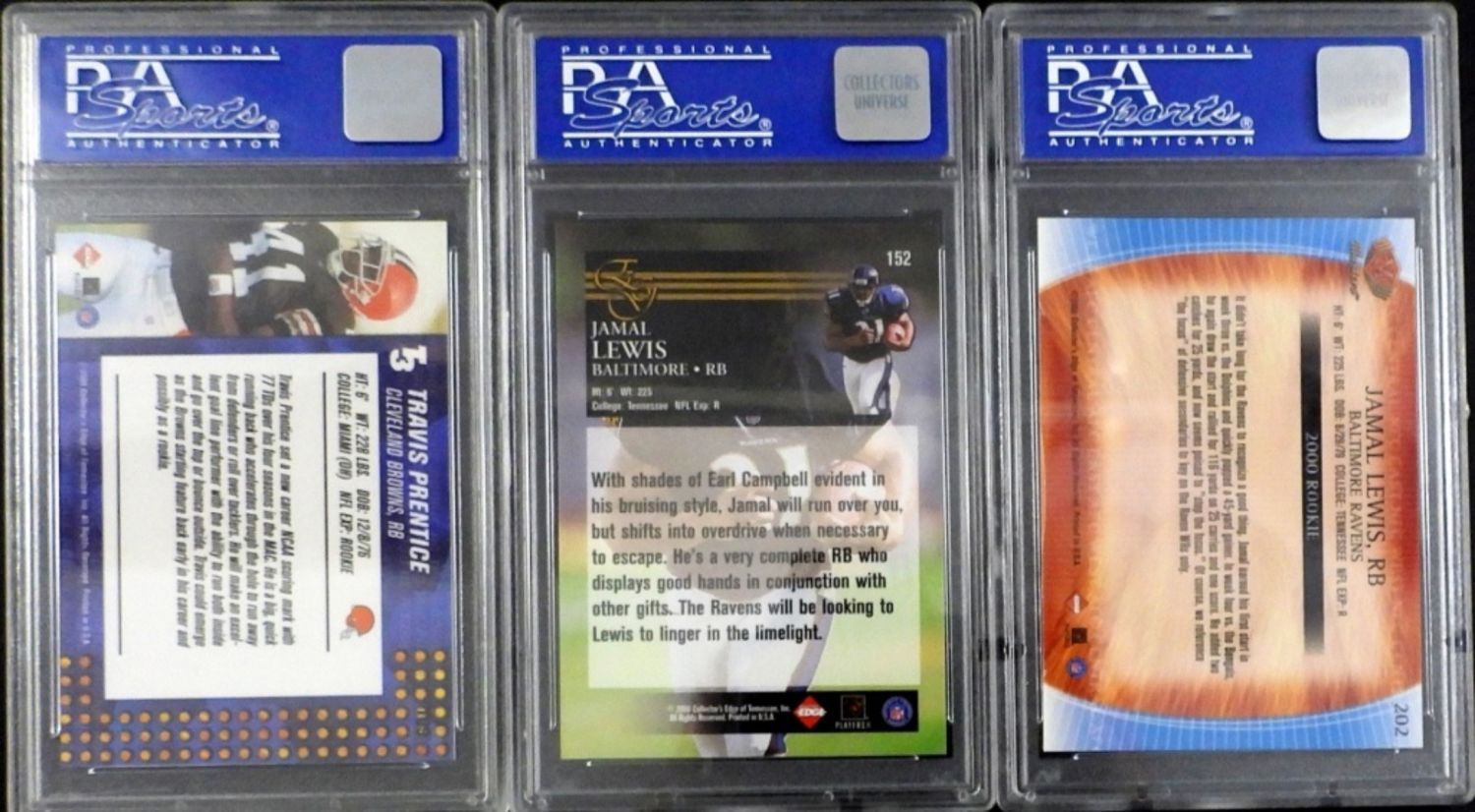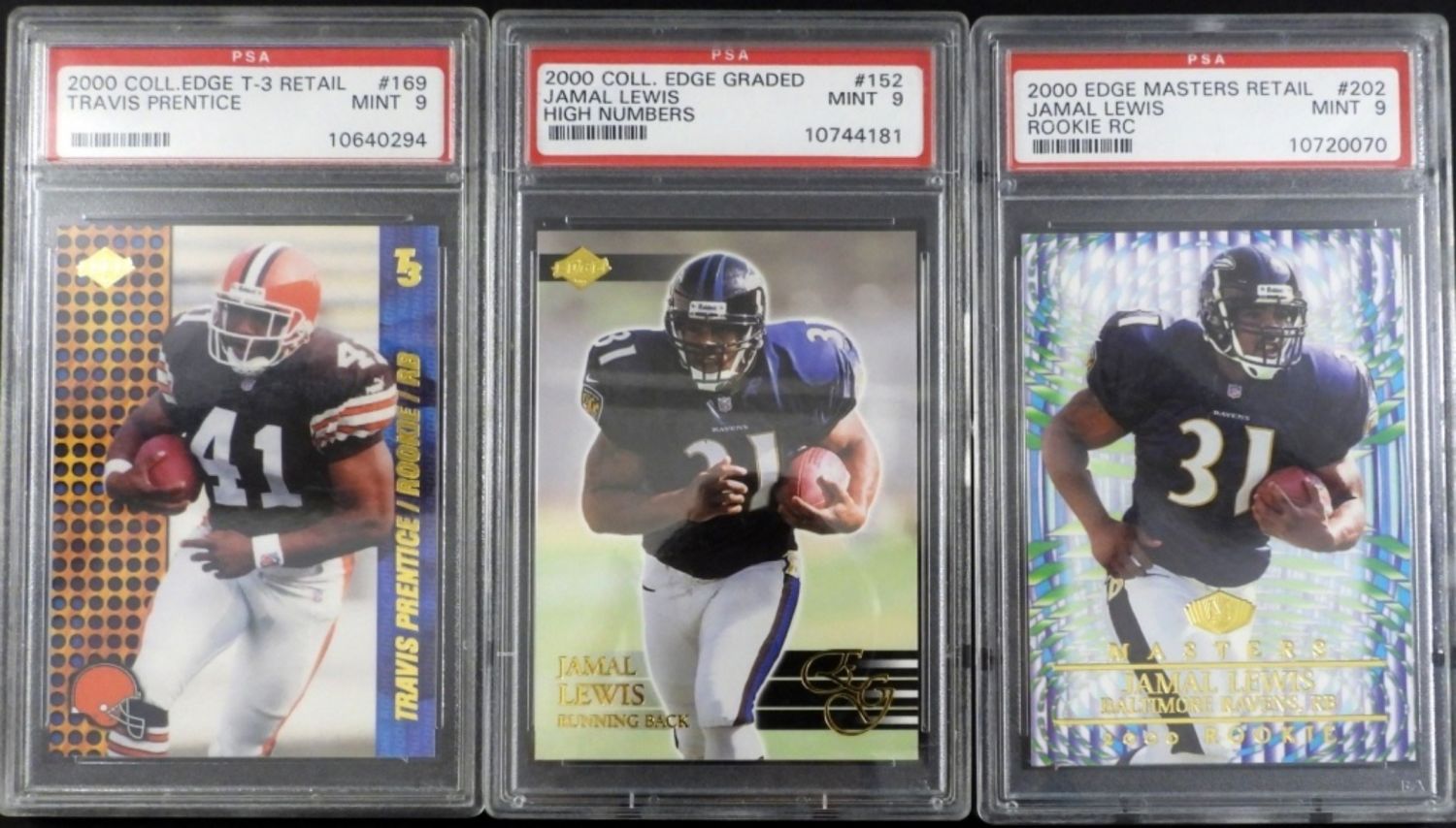 2000 COLLECTORS EDGE CARDS GRADED BY PSA 9 – (2) JAMAL LEWIS #152 & #202, (1) TRAVIS PRENTICE #169