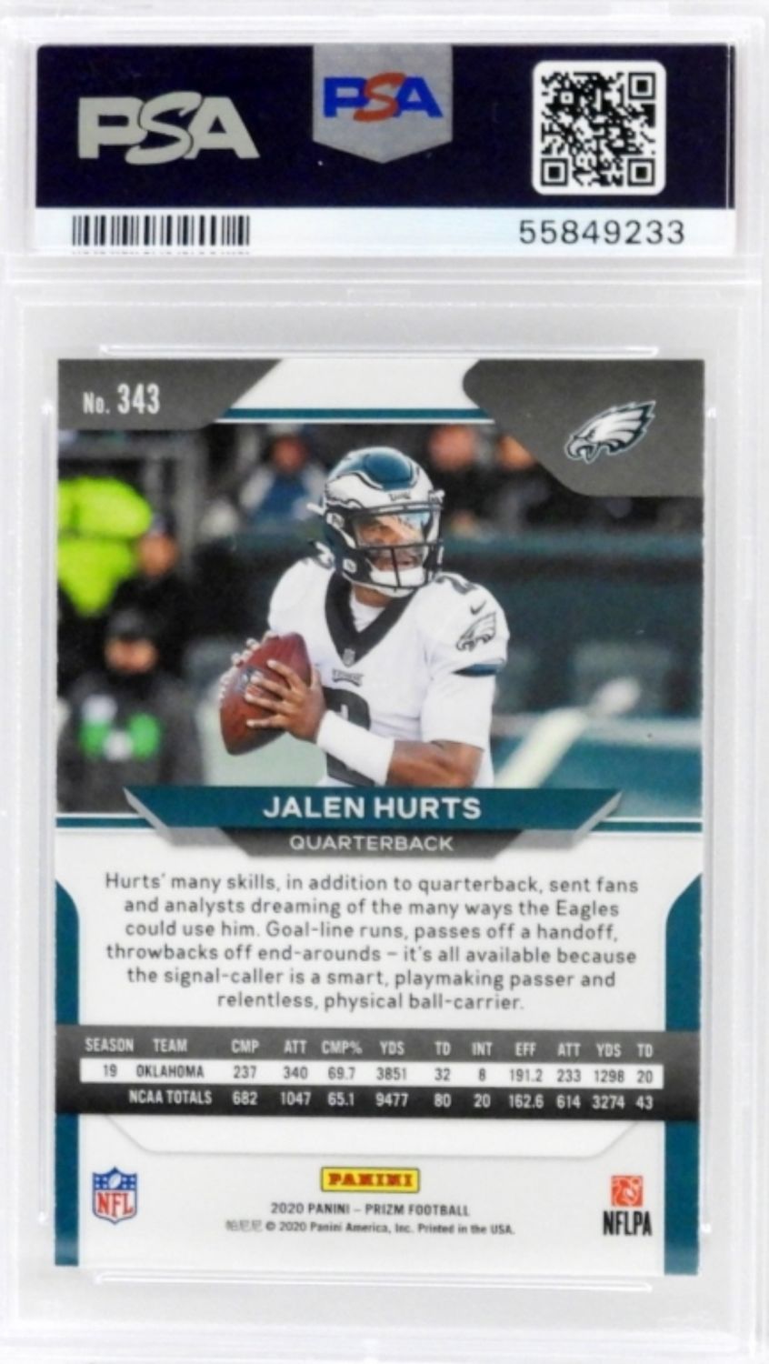 2020 PANINI PRIZM JALEN HURTS FOOTBALL RC ROOKIE CARD #343 EAGLES GRADED BY PSA MINT 9