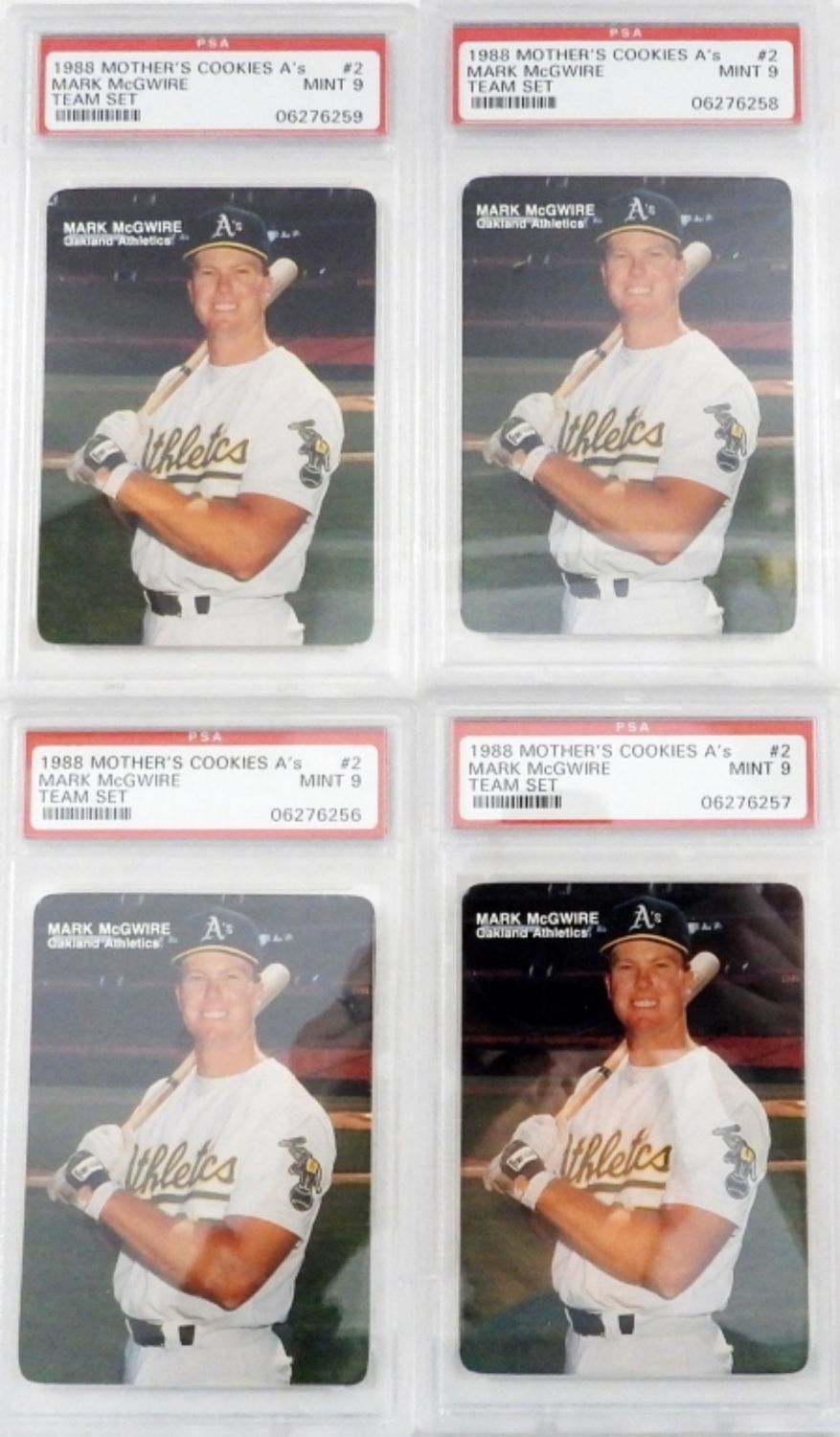 1988 MOTHER’S COOKIES A’s MARK McGWIRE TEAM SET BASEBALL CARD #2 GRADED BY PSA MINT 9