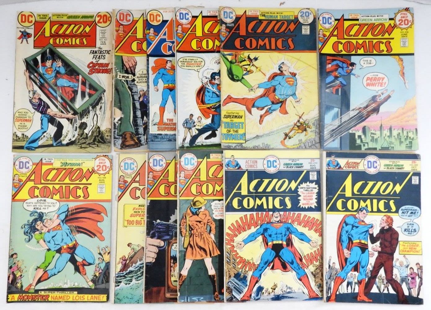 ACTION COMICS BY DC ISSUES #421, 423, 428, 431, 432, 436, 438, 439, 442, 446, 450, 452 – NICE CONDITION