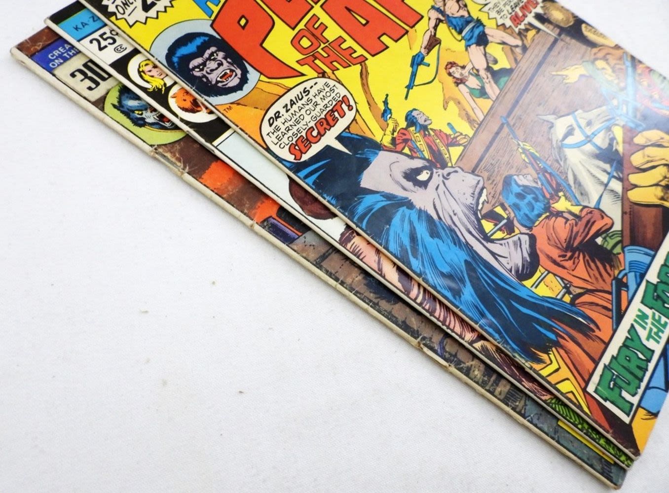 Adventures on the Planet of the Apes #5 (1976), Ka-Zar #9 (1975), Creatures on the Loose Man-Wolf #30 (1974); All Good/VG+ Conditions.