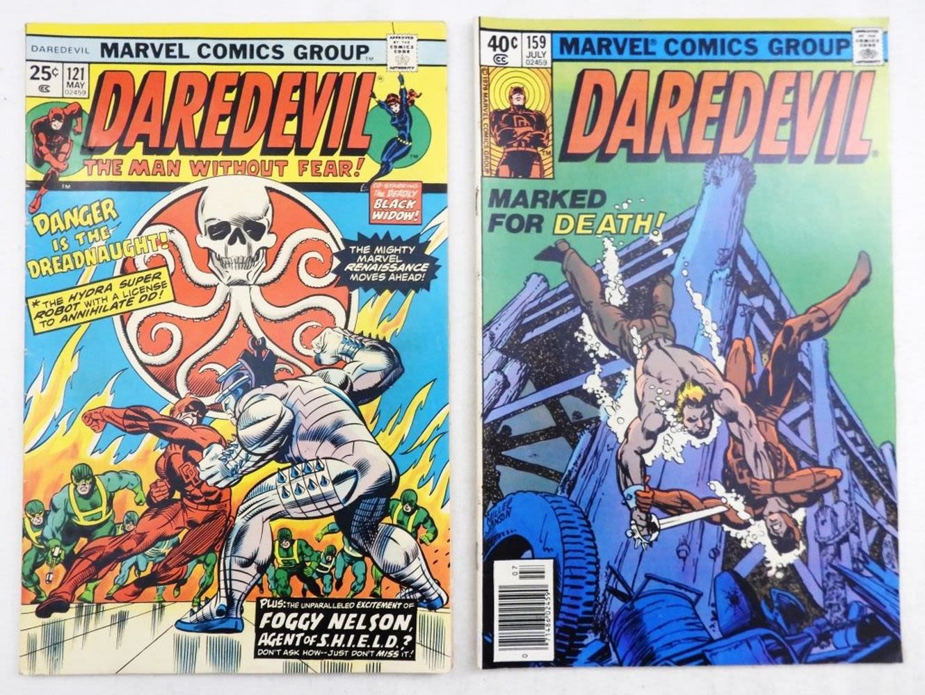 Daredevil The Man Without Fear #121 (1975) Black Widow & Dreadnaught, Daredevil #159 (1979) Frank Miller & Klaus Janson; VG Conditions.
