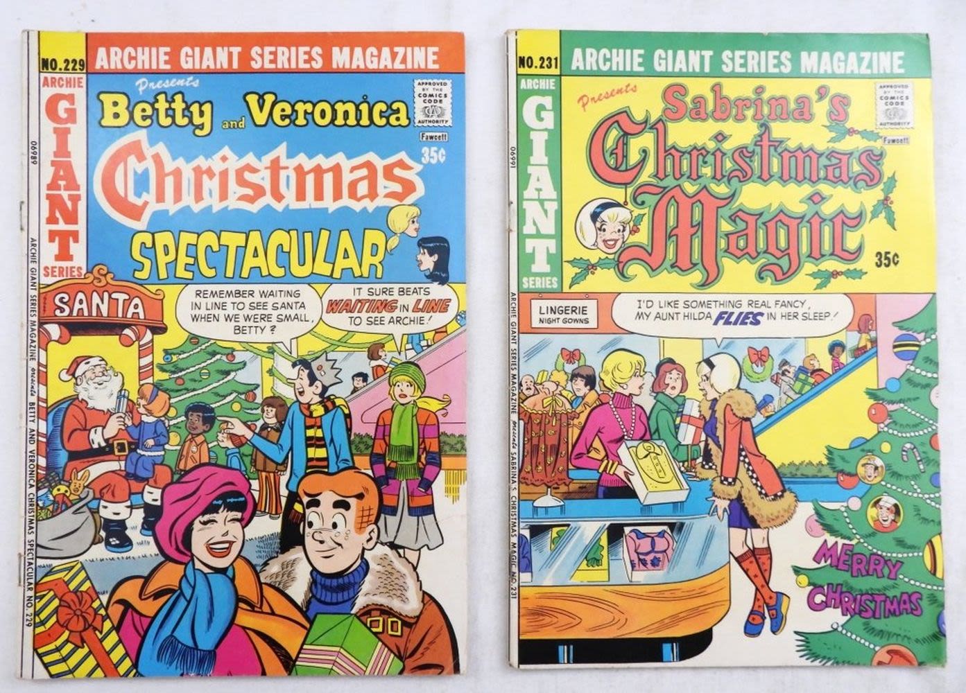 Betty and Veronica Christmas Spectacular (Archie Fawcett, 1974), Sabrina’s Christmas Magic (Archie Fawcett, 1975); Bronze Age Comics – Good/VG Conditions.