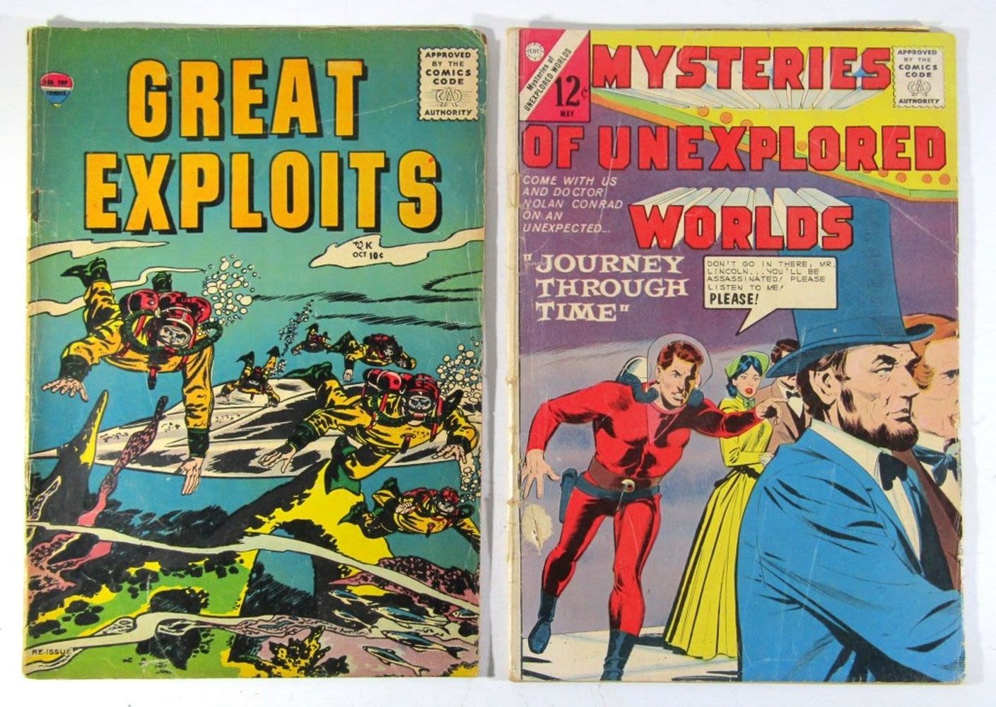 Mysteries of Unexplored Worlds #41 (Charlton, 1964), Great Exploits #1 (Decker, 1957); Both Good/Fair Conditions.