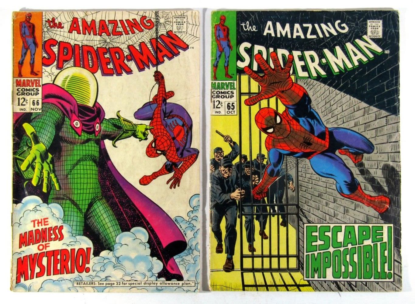 #65 Iconic Cover Foggy Nelson, #66 Mysterio & Green Goblin; Silver Age Comics – Good+ Conditions.
