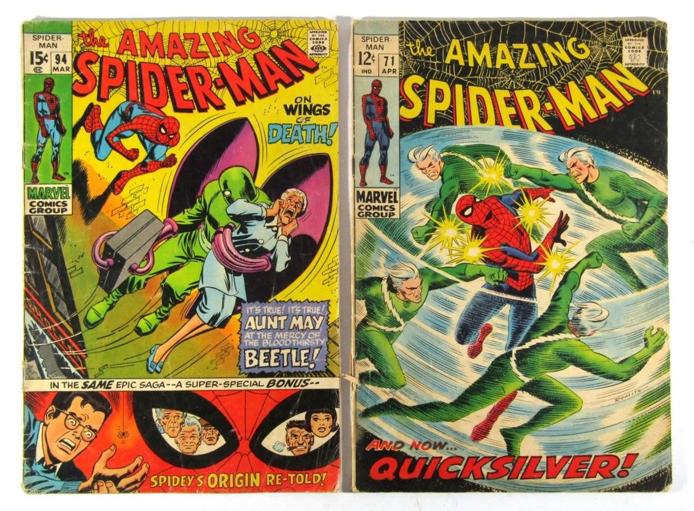#71 Quicksilver Appearance (1969), #94 Origin of Spider-Man Retold (1971); Silver and Bronze Age Comics – Good Conditions.
