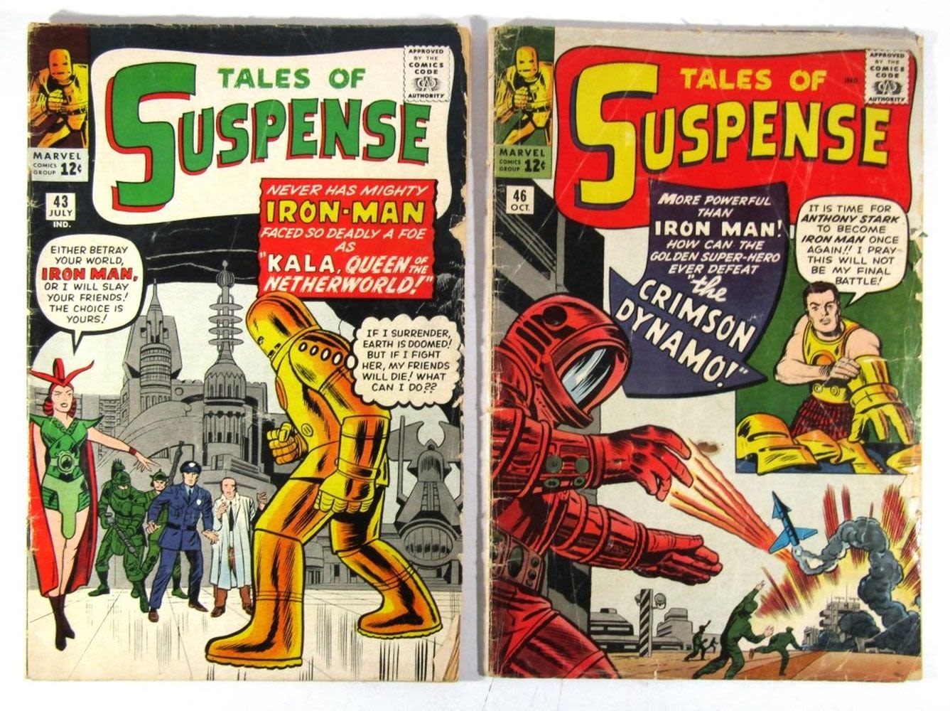 #43 EARLY Iron Man, #46 1st Appearance of Crimson Dynamo; Silver Age Comics – Good/Fair Conditions.
