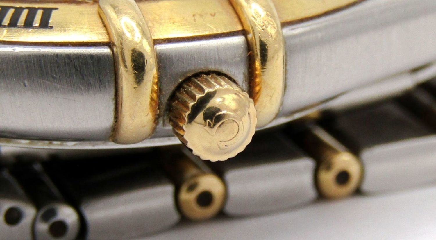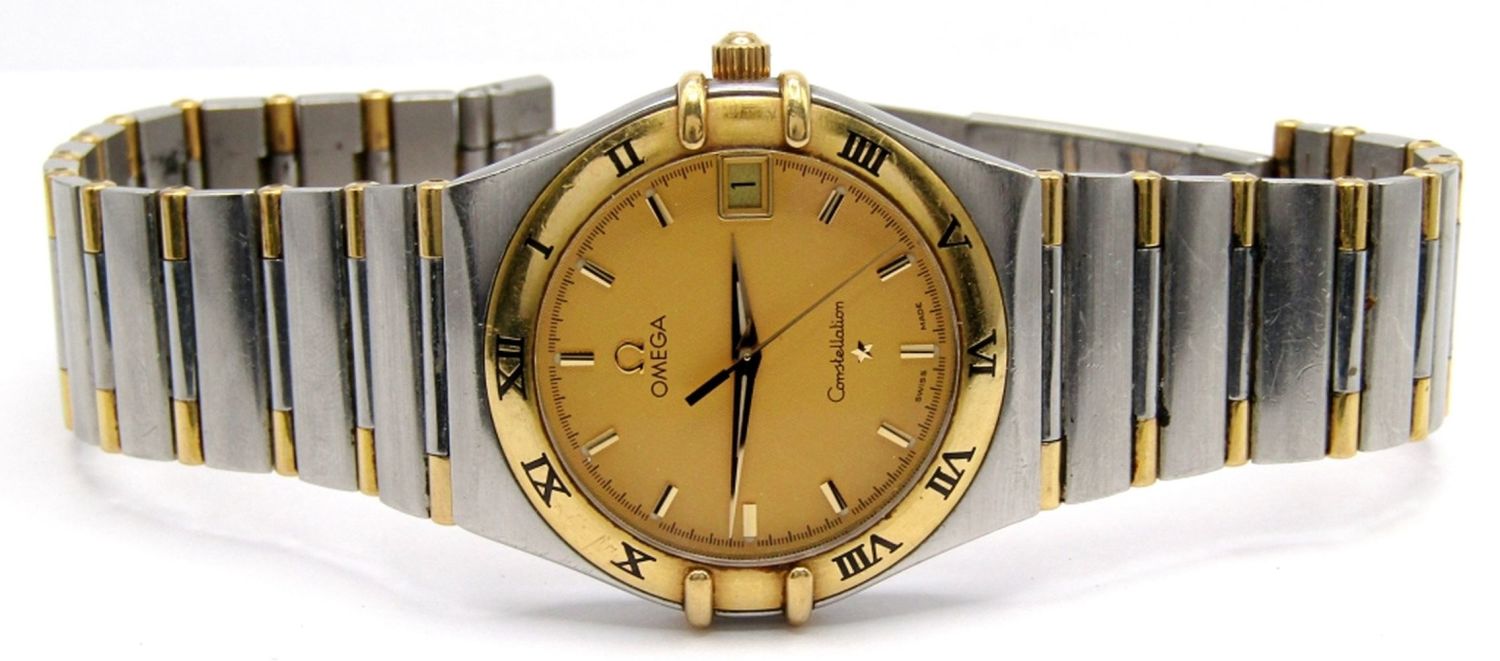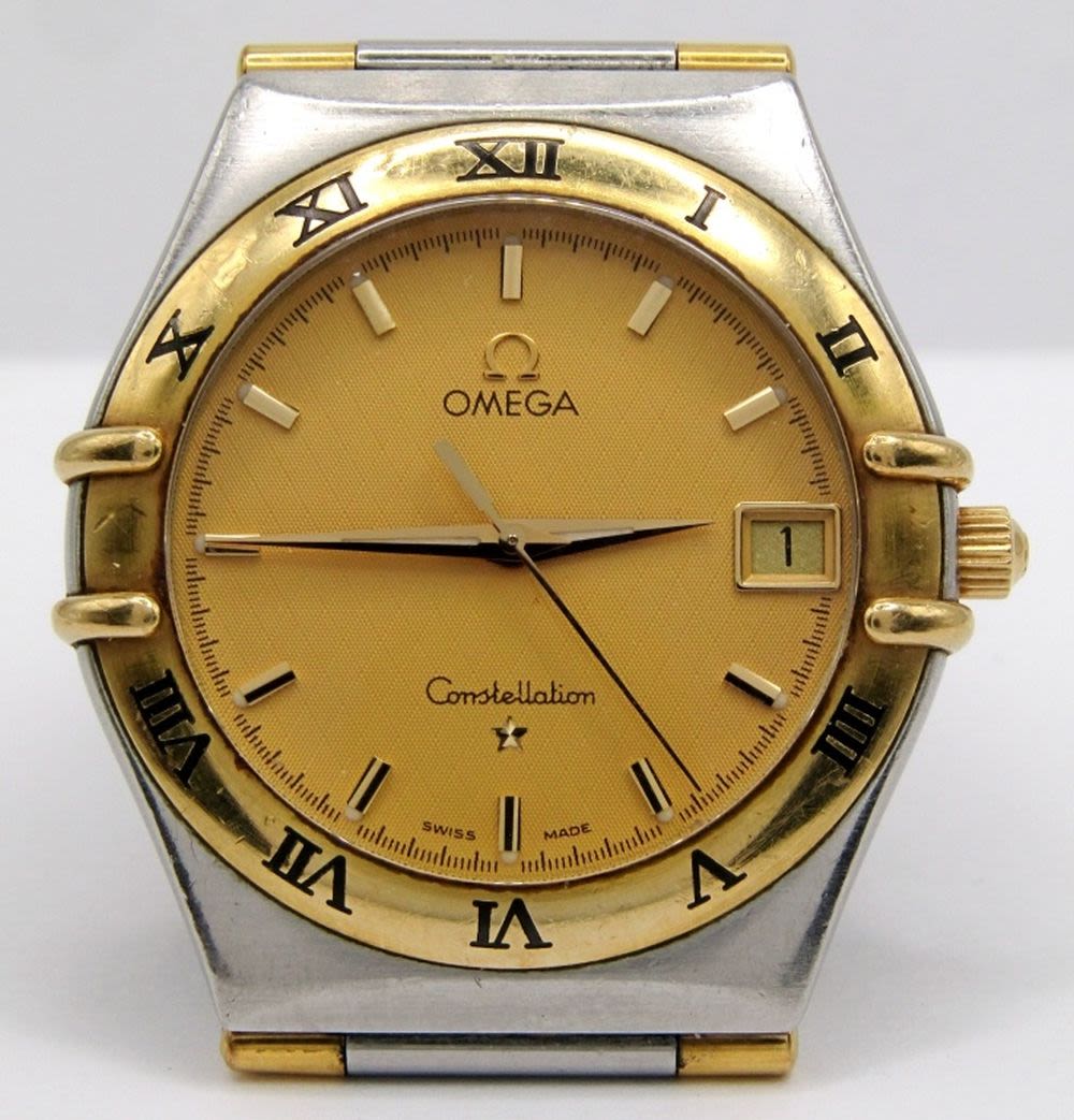 Ref 396 1201, Perfect Champagne Waffle Dial, Cal 1532 Movement, 34mm, Stainless Case with Gold Enamelled Bezel and Gold Accent Links; Working at time of listing.