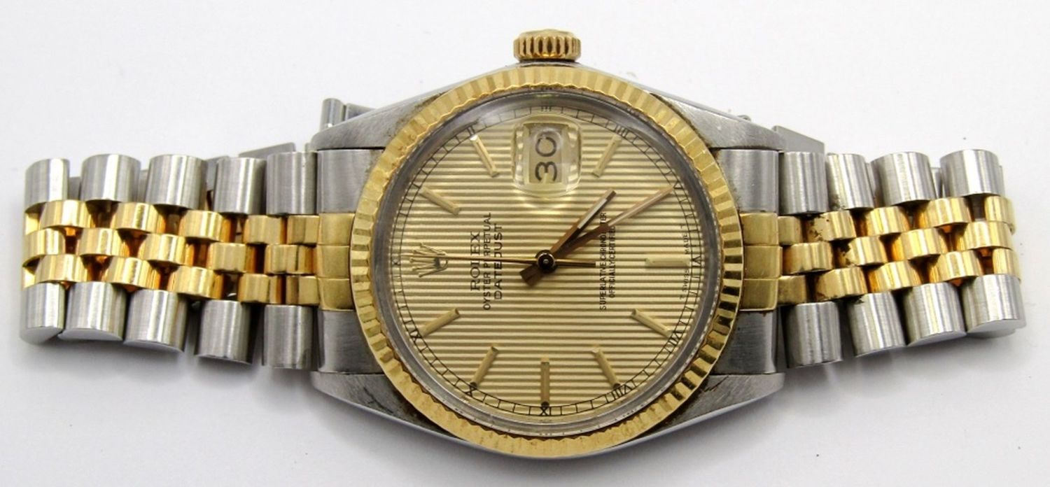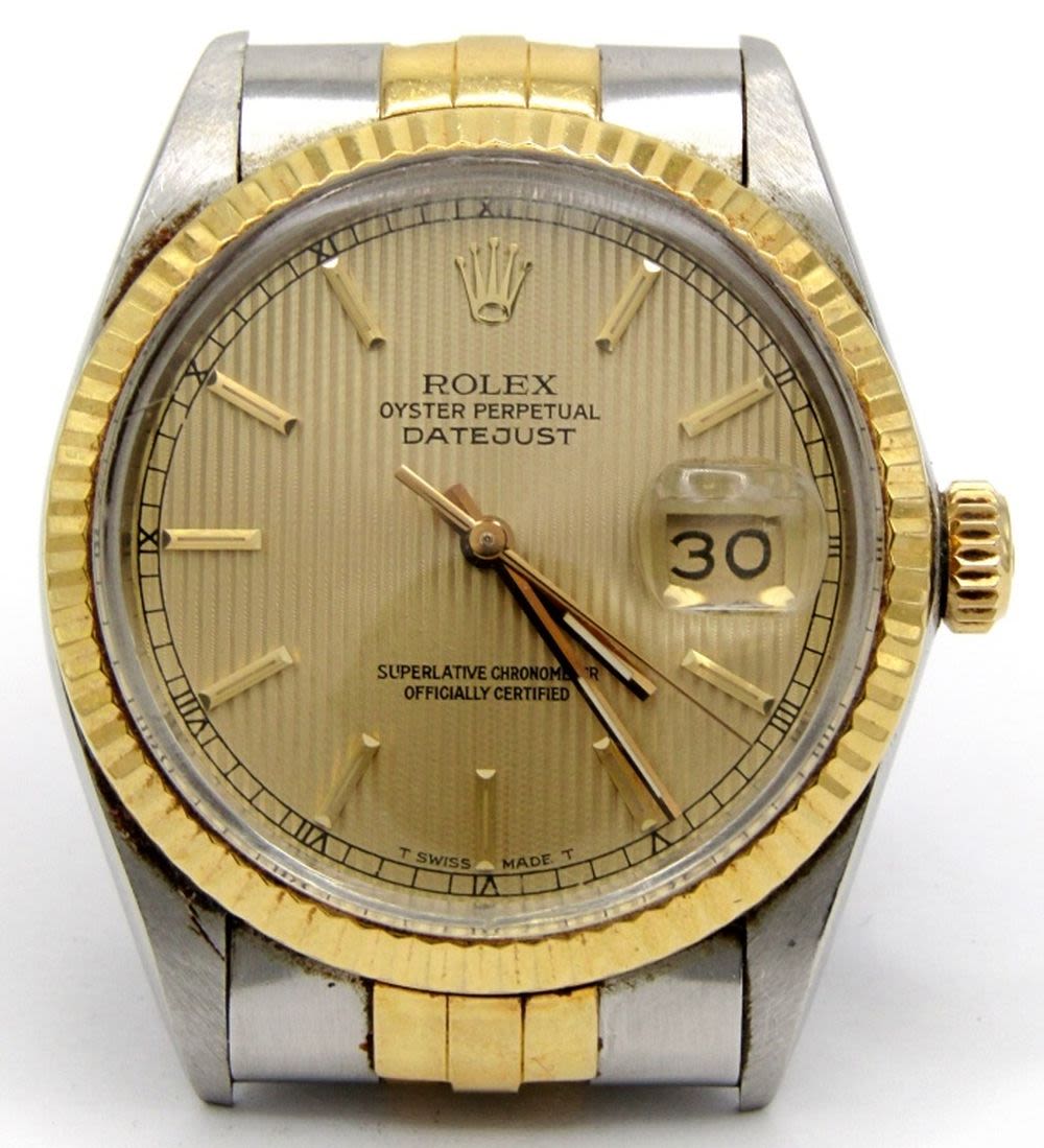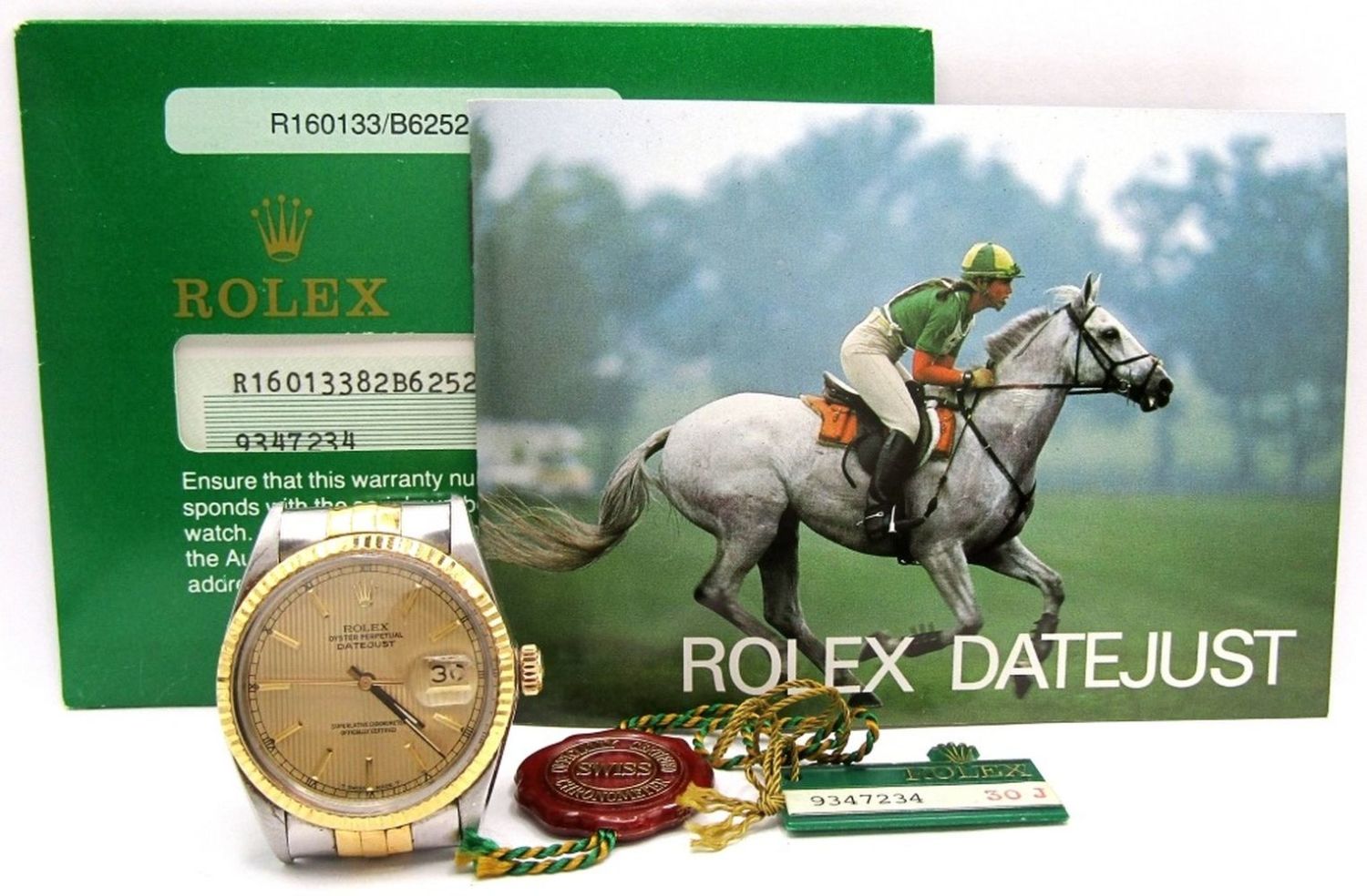 Ref 16013, Perfect Champagne Tapestry Dial, Jubilee Bracelet, Circ 1987, Complete with Books, Warranty, and Hang Tag; Working at time of listing.