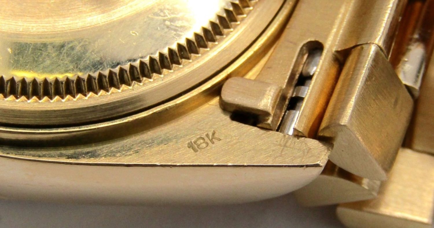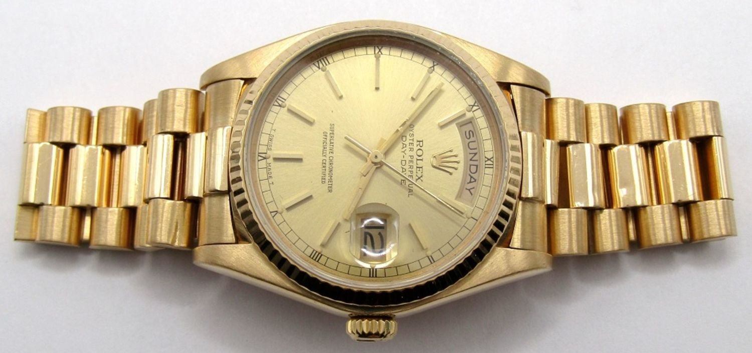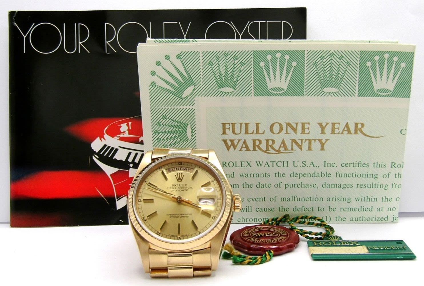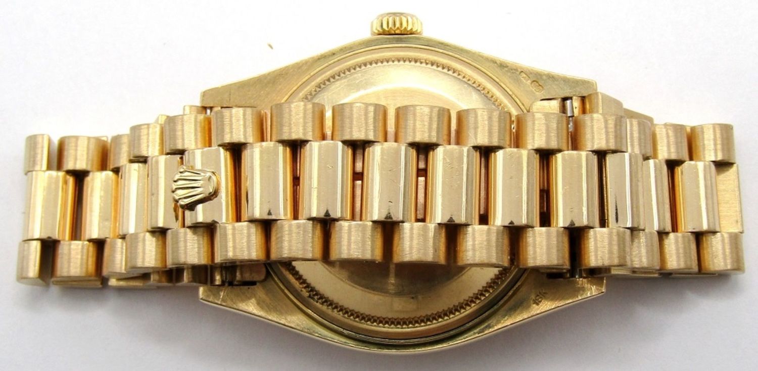 Ref 18038 Single Quick, 36mm Case, Circ 1983, Perfect Champagne Stick Dial, Sapphire Crystal, Presidential Band with Hidden Clasp. Complete with Leather Box, Books, Hang Tags, and Warranty; Working at time of listing.