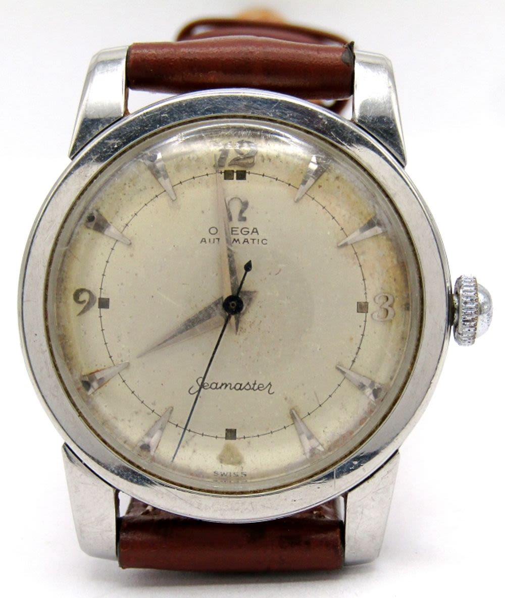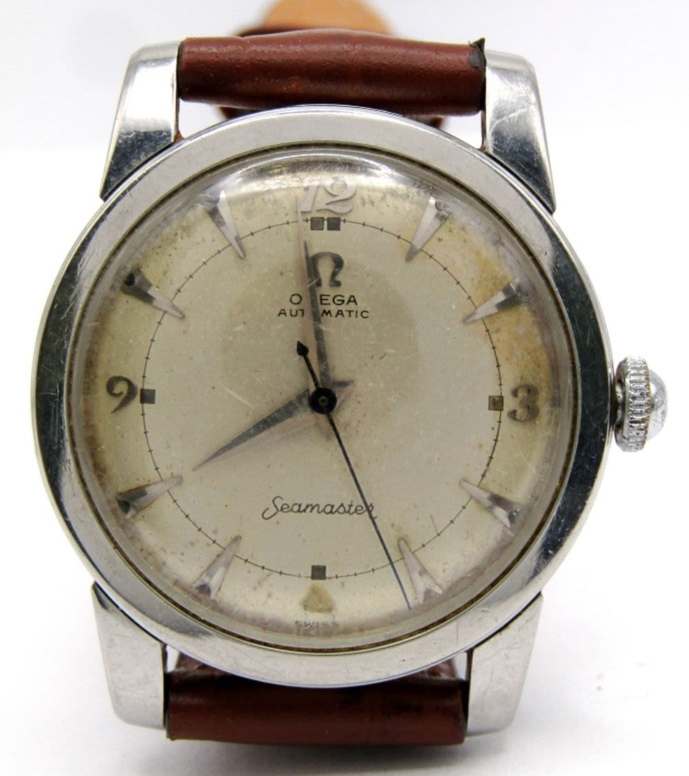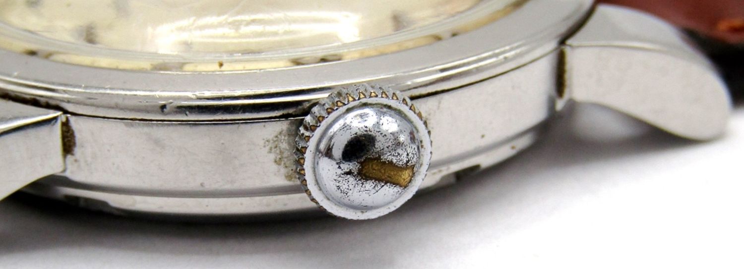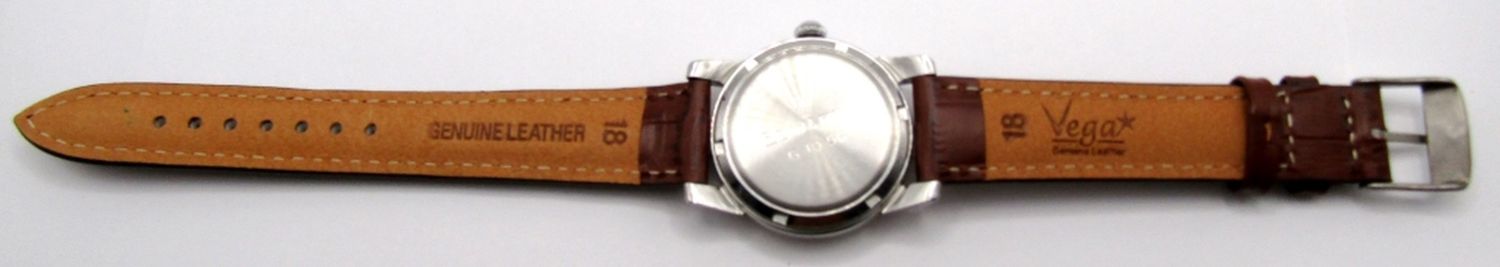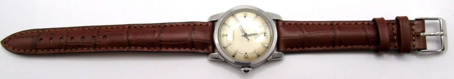 Ref C2677-12 SC, Original Dial with Fancy Arabic #’s. 17 Jewel Cal 354 Bumper Automatic, 35mm Diameter, Stainless Screwback Case, Case Back with Engraving Dated 1956. New Strap; Working at time of listing.