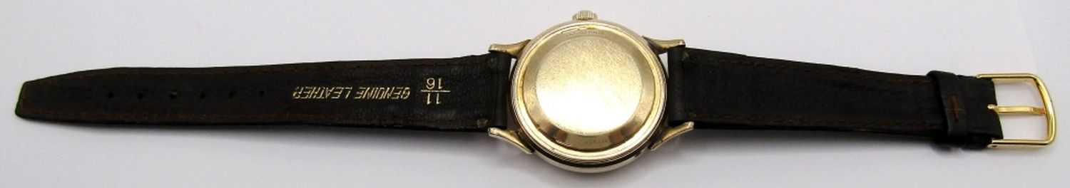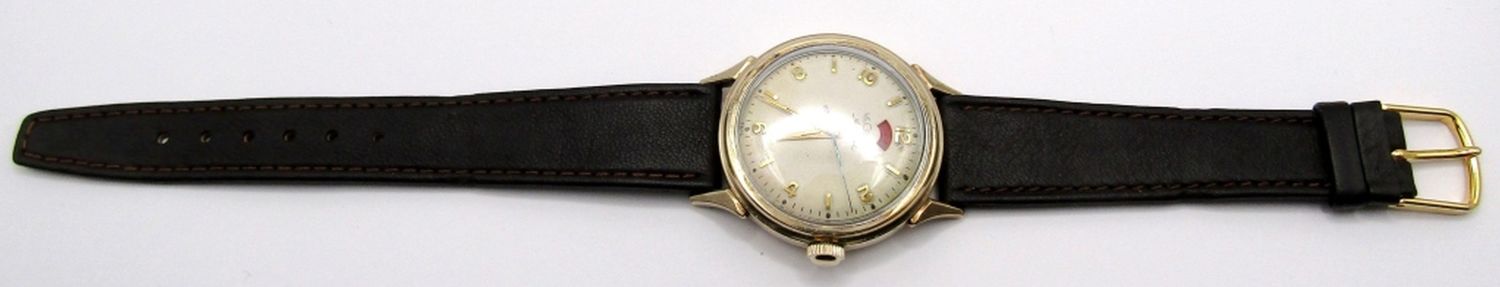 Original Dial with Indicator Window, Yellow Gold Filled Case – Screwback, 35mm Diameter. 17 Jewel, Cal 481 Bumper Automatic Movement; Working at time of listing.