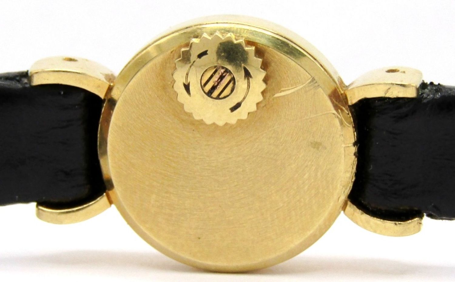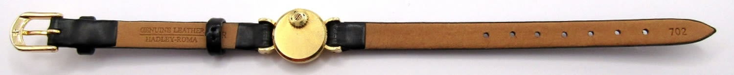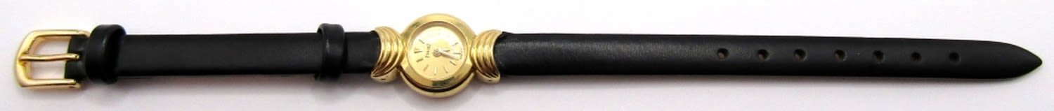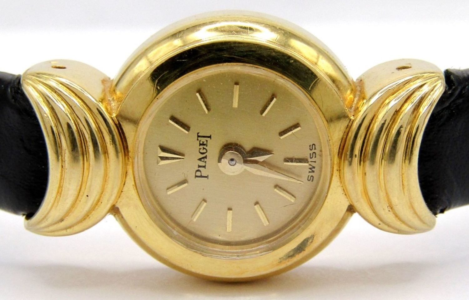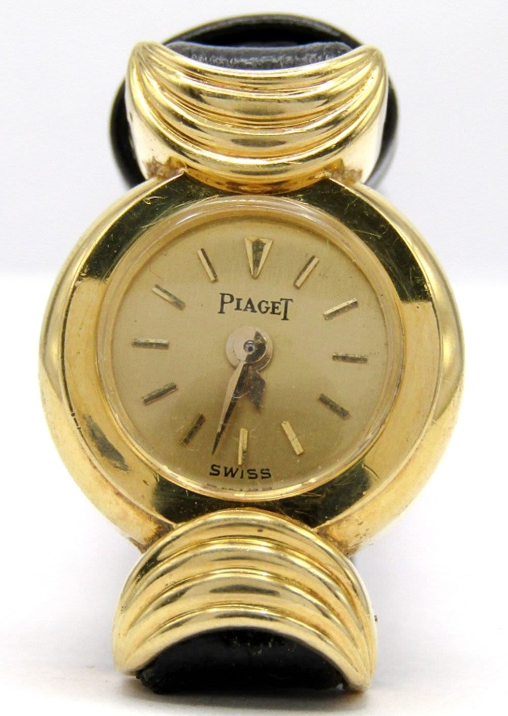 Perfect and Original Champagne Dial, 17 Jewel Cal Piaget 6N Movement, 18KT Hidden Lugs Case, Case Diam 16mm. New Black Strap; Working at time of listing.