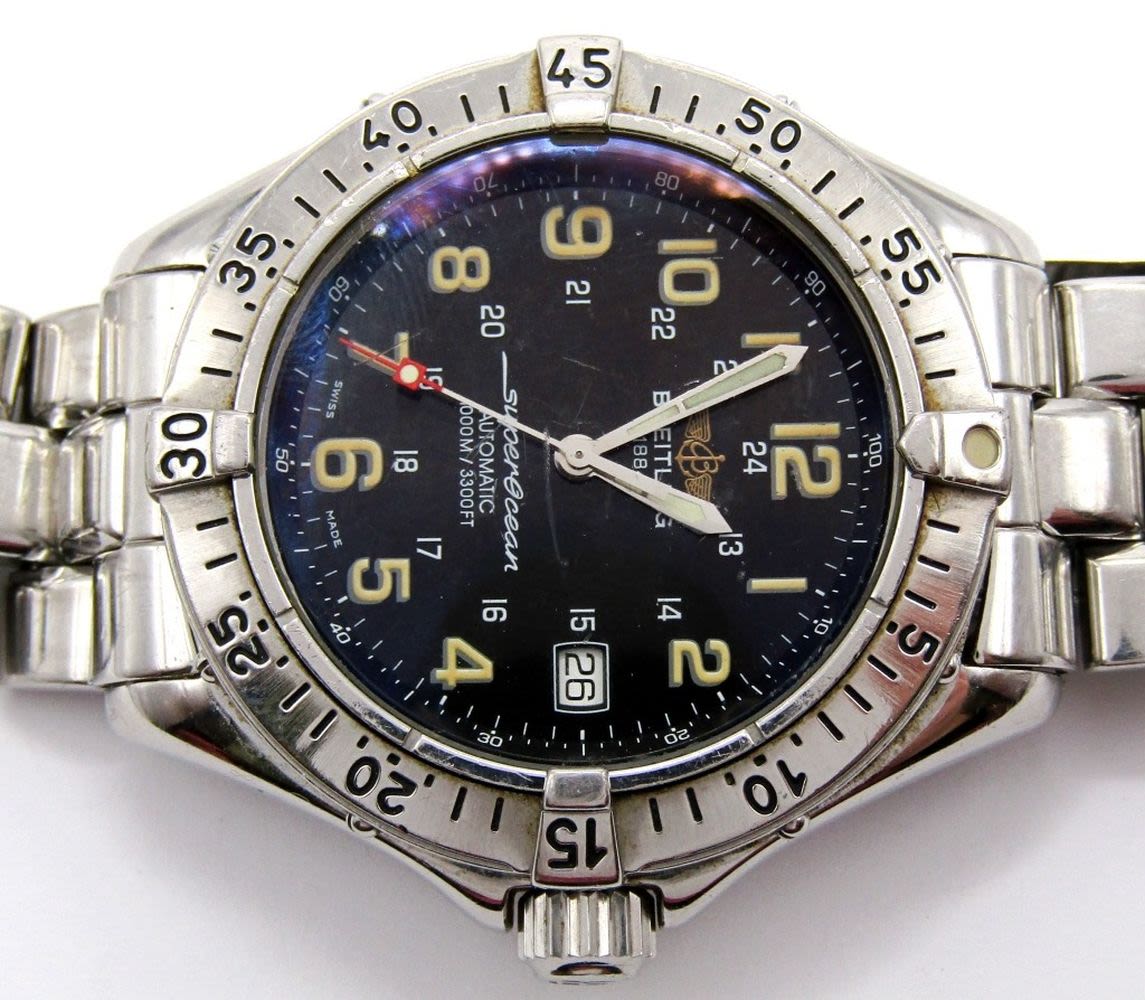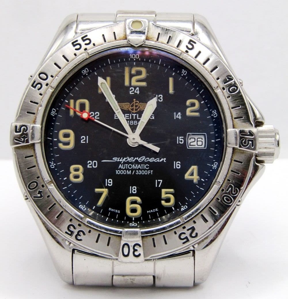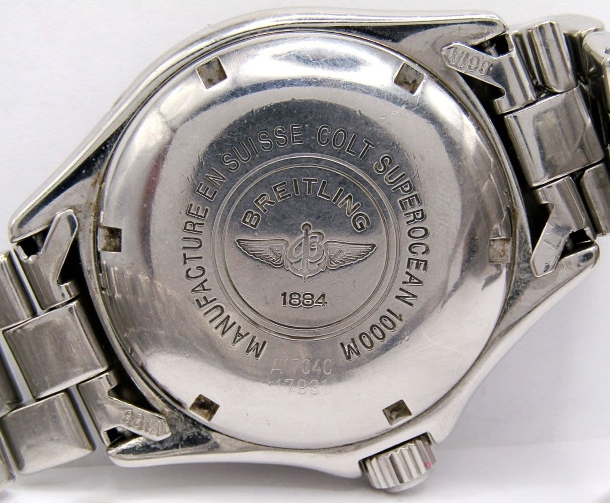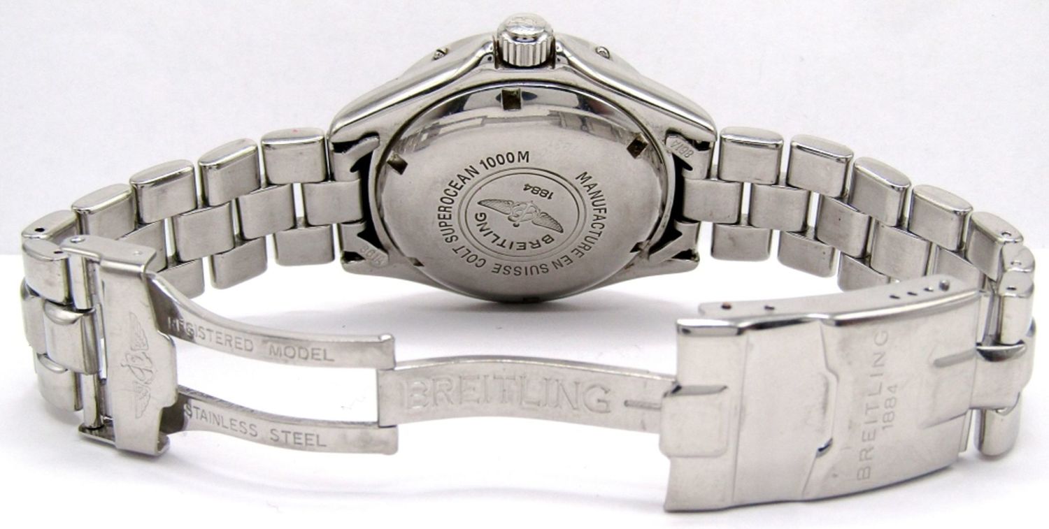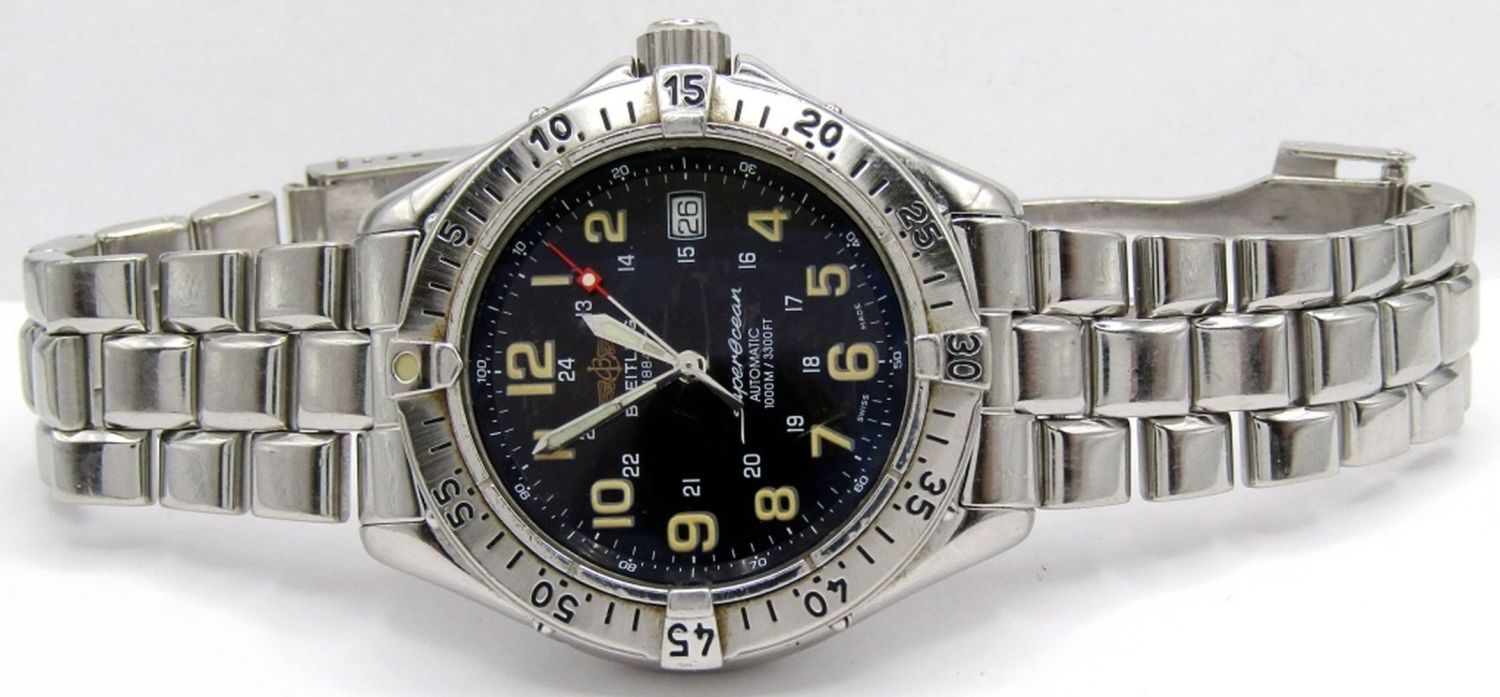 Ref. A17040, Nice Black Dial, 41mm Case, Automatic Movement, Breitling Stainless Bracelet with Extension Link and Fliplock; Working at time of listing.