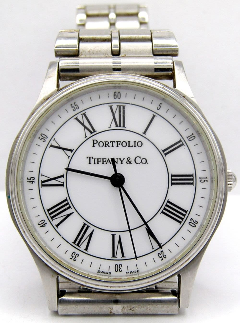 Perfect White Roman Dial, Quartz Movement with Fresh Battery, 33mm Case Diameter, Complete with Aftermarket Stainless Bracelet; Working at time of listing.