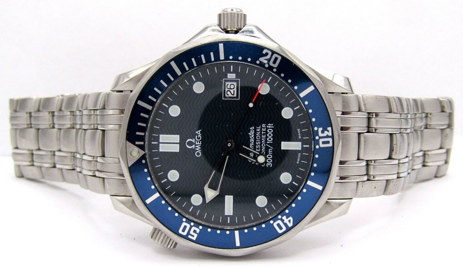 Ref 2531.80, Perfect Blue Wave Dial, 23 Jewel Cal 1120 Automatic Mov’t, 41mm Case Diameter, Stainless Screwback Case with Rotating Blue Bezel and Logo Back. Complete with Hang Tag, Books, Wallet, and Blank Warranty Card; Working at time of listing.