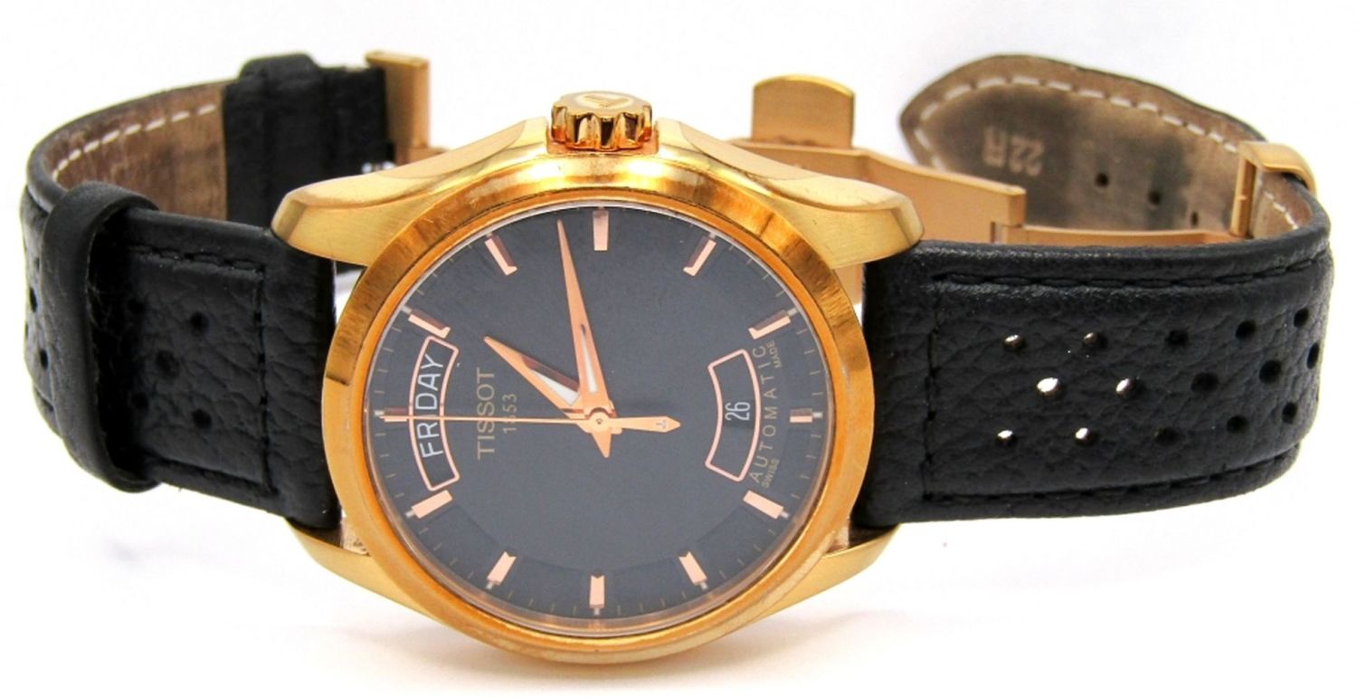 Gold Plated PVD Case, 41mm Diameter, 25 Jewel Automatic Movement. Complete with what appears to be an Original Leather Strap and Signed Deployment Clasp. This watch has very little use; Working at time of listing.
