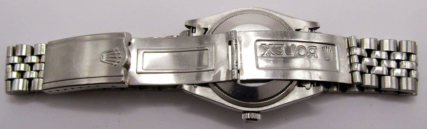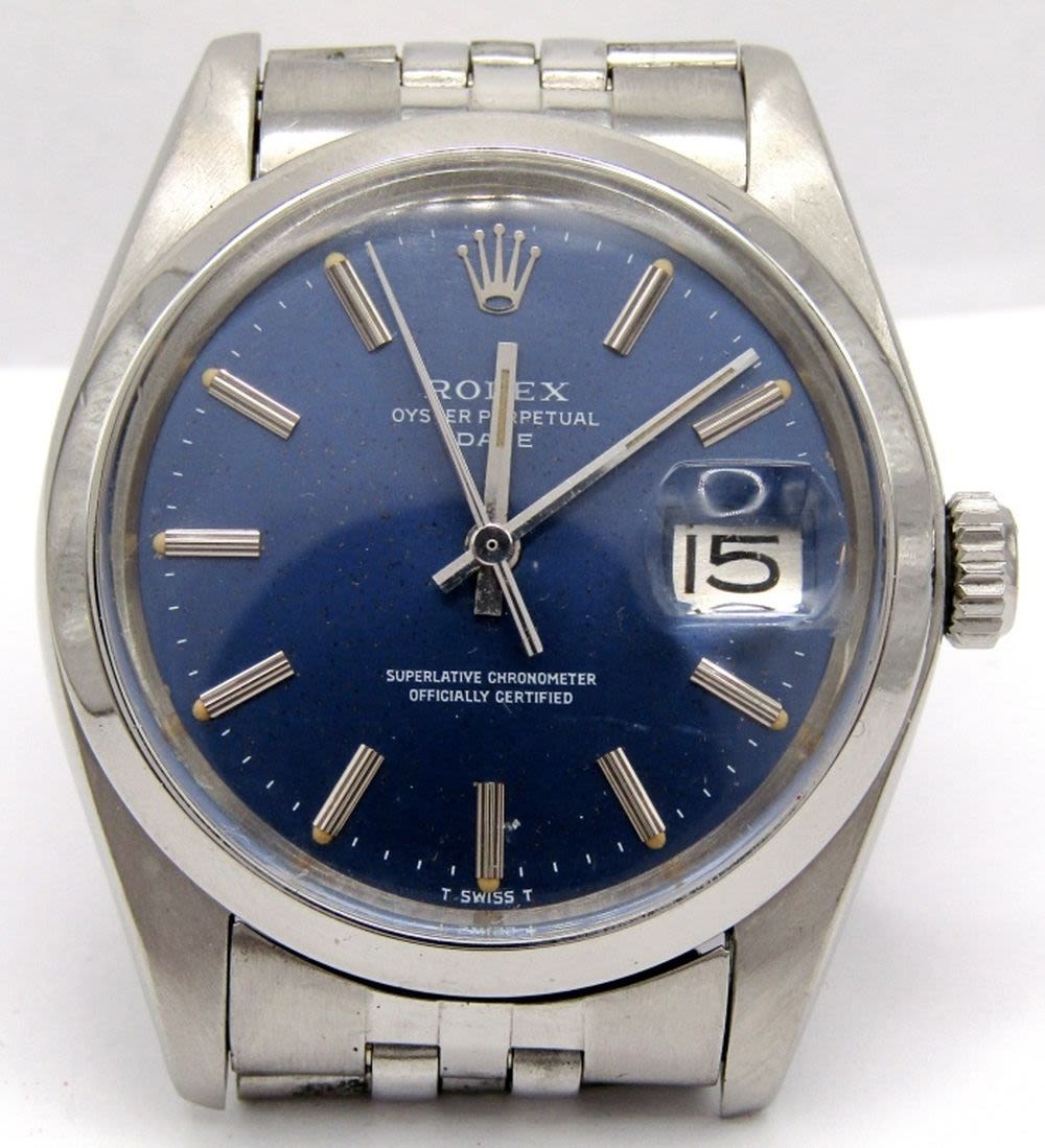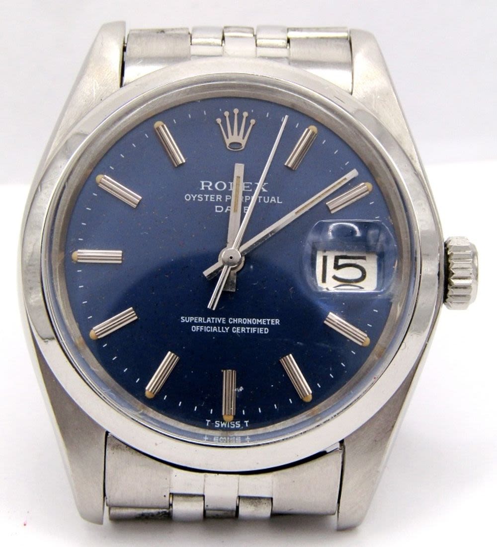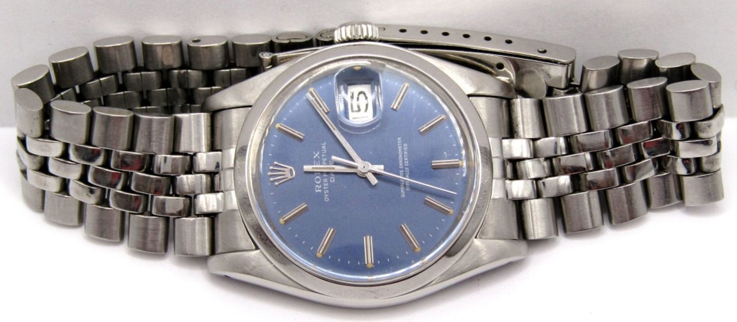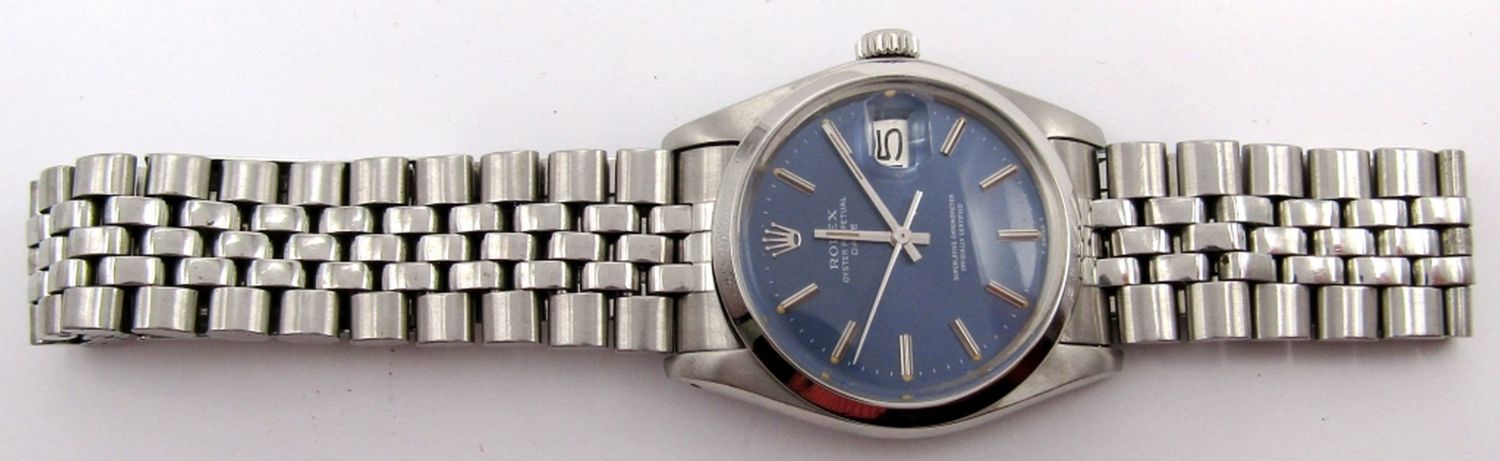Ref. 1501, 34mm, Perfect Blue Stick Dial, Circ 1978, Oval Link Jubilee Bracelet; Working at time of listing.