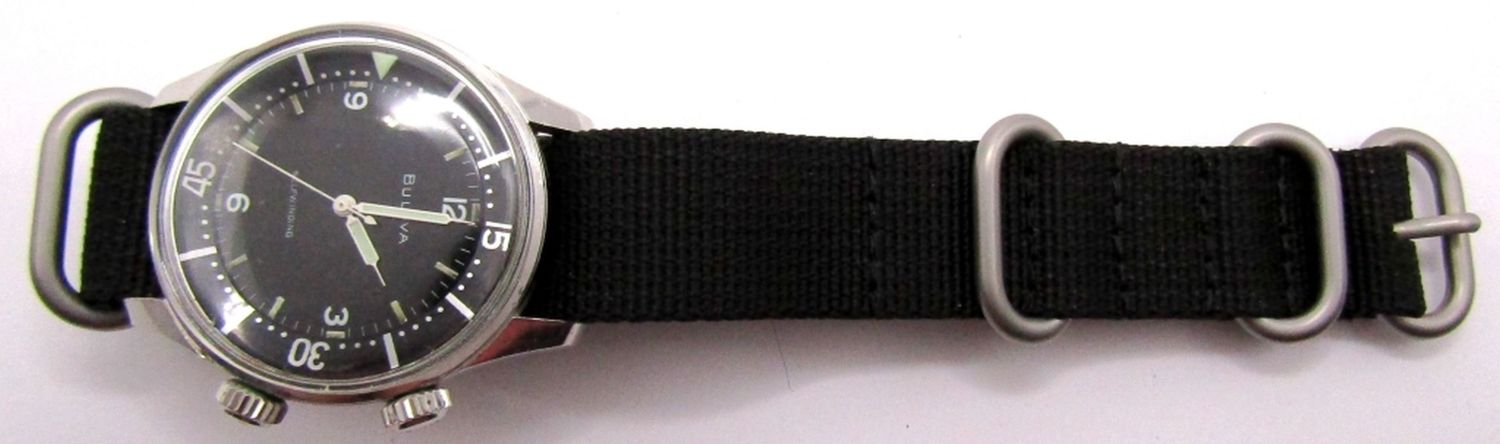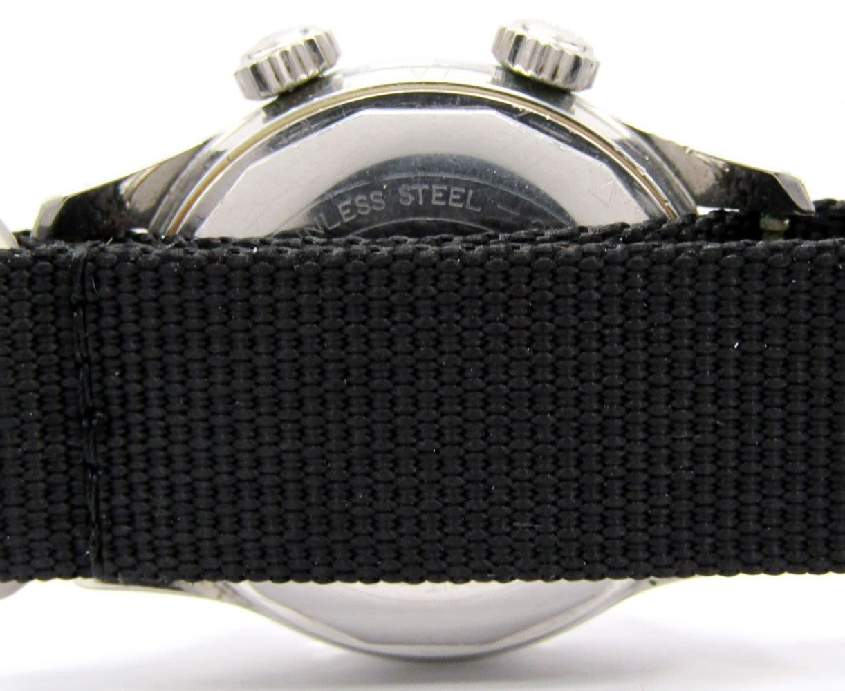 Stainless Steel Case with Signed Crowns. Perfect Dial, Hands, and Chapter Ring, 36mm Diameter, 17 Jewel Automatic Movement; Case Date Code = M2 = 1962 Complete with New Nylon Nato Strap; Working at time of listing.