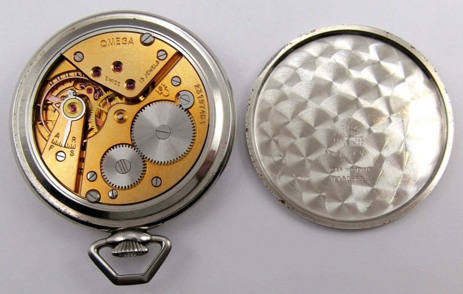 Ref 1180-65, Excellent Original Dial, 15 Jewel Mov’t, Cal. 161 – Stem Set, 49mm Diameter, Snap Back Stainless Case; Working at time of listing.