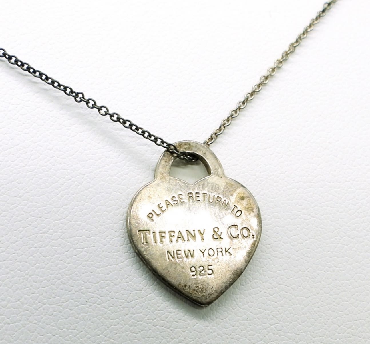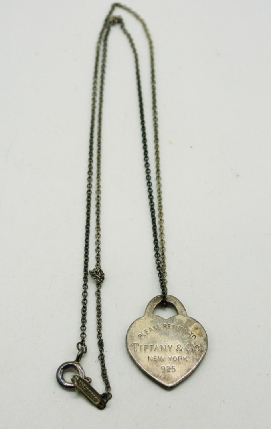 Sterling Silver Tiffany & Co Heart Pendant and Original Chain. Chain has two knots. There is some tarnish, but could be cleaned. 2.3DWT